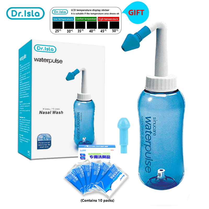 Aolon x DR.Isla YT300 Water pulse 300ml Nasal Wash +10 Bag 2.7g Nose Antibacterial Powder Washing Salt Nose Clean Bottle Cleanser for Adult Allergic Rhinitis, Sinus, Daily Nasal Rinsing Nose Care Too