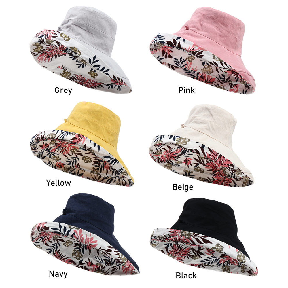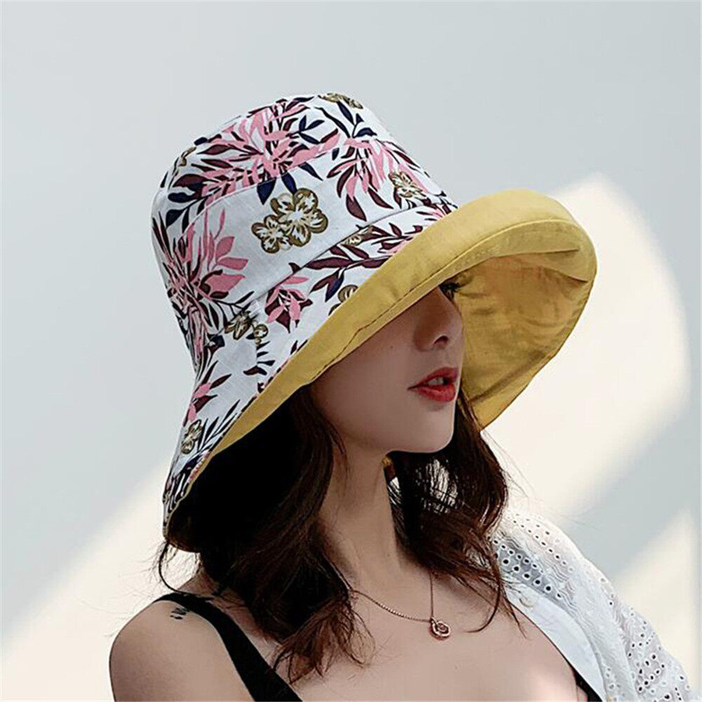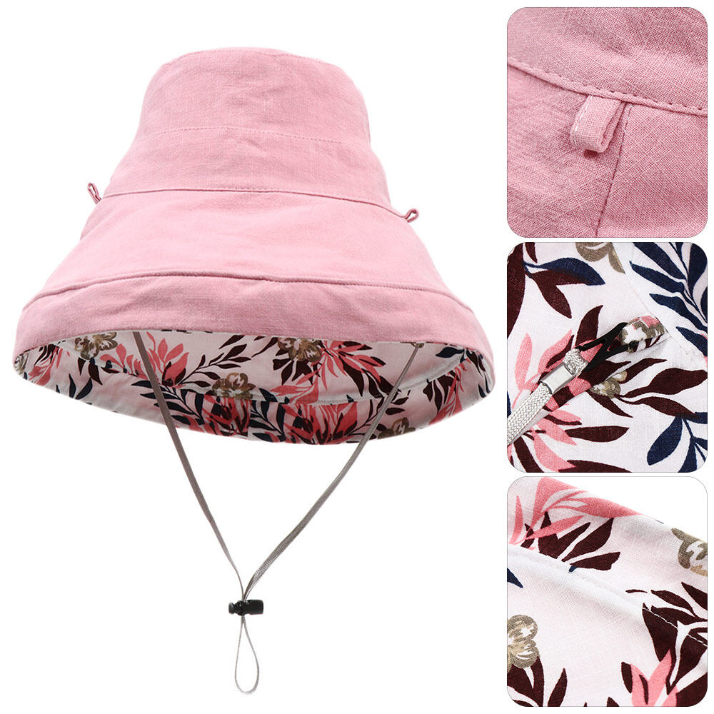 1pc Wide Brim Anti-UV Bucket Hat Foldable Portable Women Beach Sun Hat Big Visors With Windproof Rope Summer Fisherman Cap