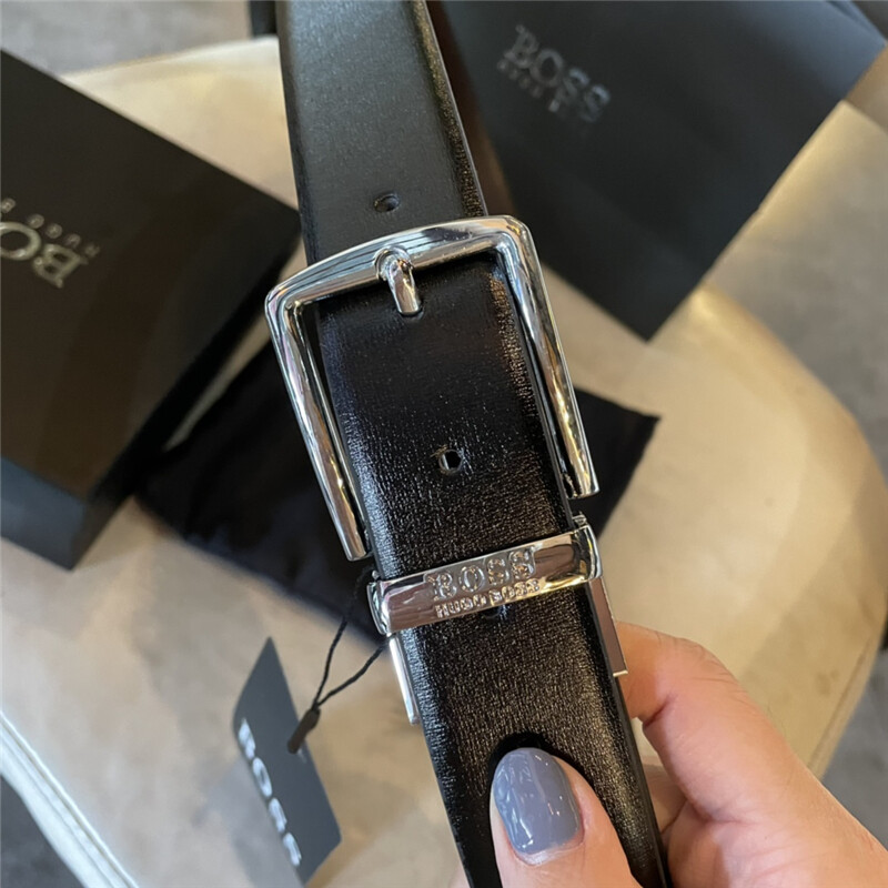 Original New 2021Hugo Boss High Quality Cowhide Men's Real Buckle Belts Apply To Business and Elegant Fashion
