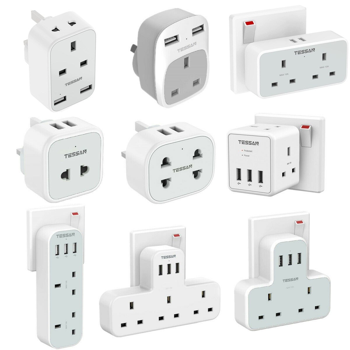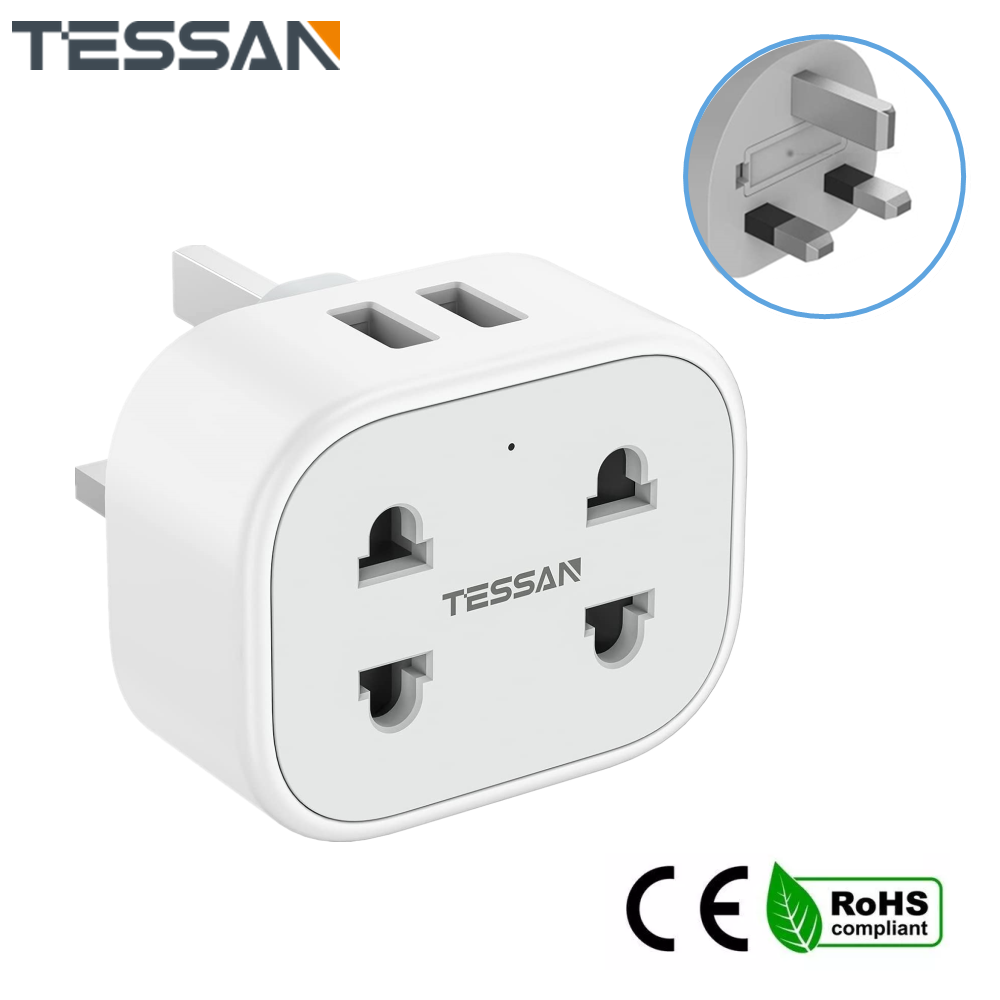 - 3 in 1 Shaver Charger Adapter: TESSAN 2 pin plug converter can extend a standard UK 3 pin socket to 2 pin sockets and 2 USB ports, allows you to charge a toothbrush or beard trimmer and 2 USB devices from a normal UK socket anywhere