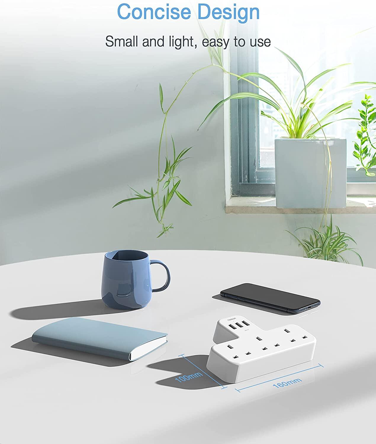 - Concise Design: This extension plug is cable free, simply plug into the wall and then you can use it. Easily integrate into majority of home decoration styles. No more tripping up on loose wires. Suitable for home, bedroom, office, kitchen and so on