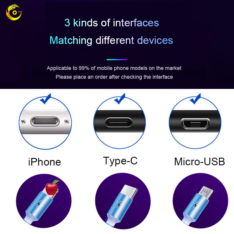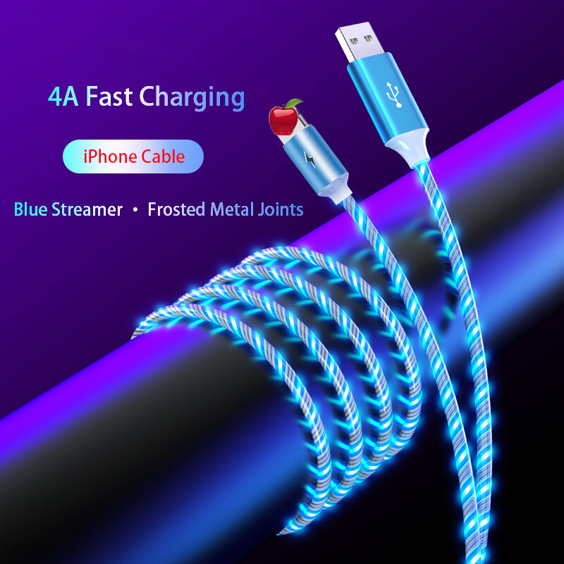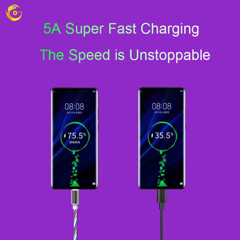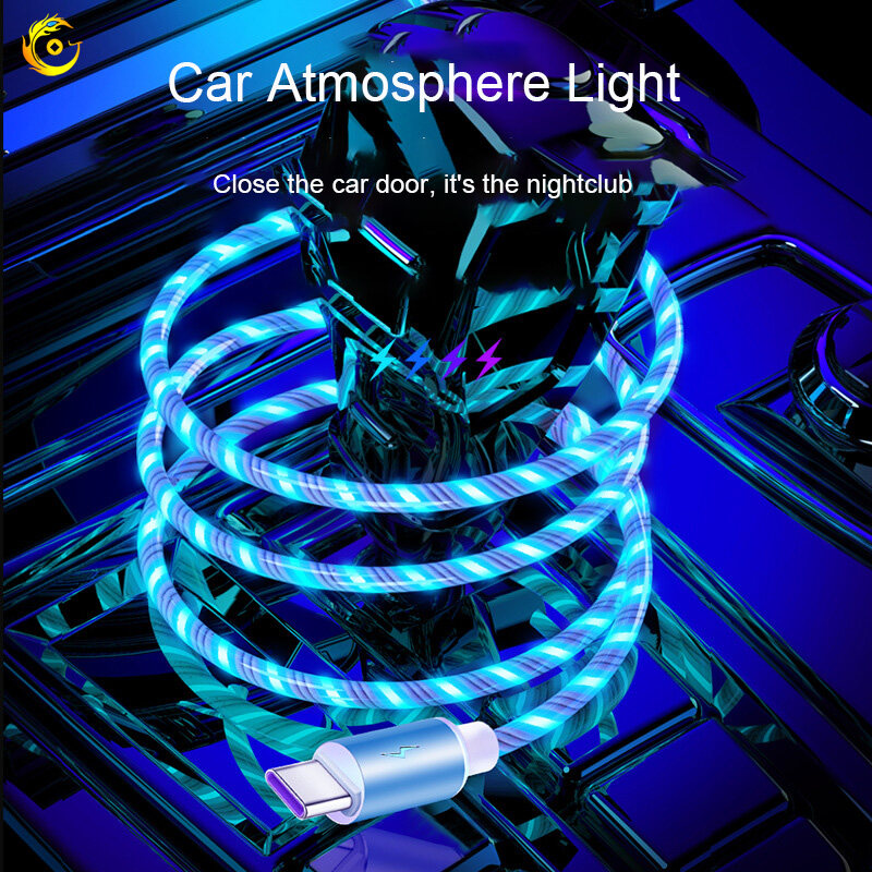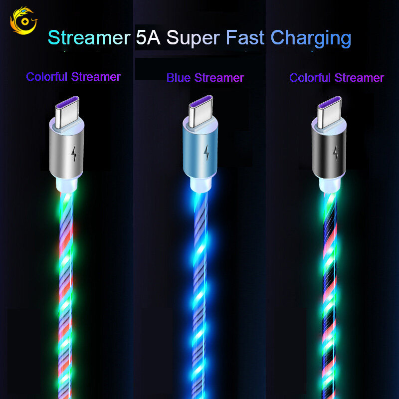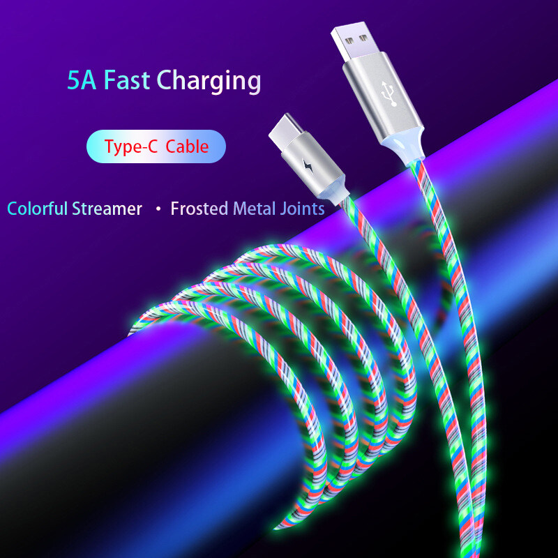 5A Fast Charging Cable LED Luminous Glow Flowing USB Cable Colorful Streamer Data Wire MicroUSB/Type-C/iPhone Quick Charge Wire for iphone Android