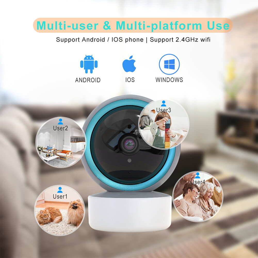SpecificationSensor RGB 1080P 1/2.9 inch CMOSSupport 2.4ghz and 5G WIFI connectLens 3.6mm standard lensResolution 1080P(1920*1280) Pan/Tilt Angle Level:355° Tilt:120°CPU Anyka3918EV300/IngenicT21NMini Sensitivity 0.02LuxInfrared night vision Maximum support 10 meters, through the automatic photosensitive resistance control infrared openCompression H.264 dual streamFrame 1080P@20FPS Video code stream 1080P:1.2~1.5Mbps Audio format G.711ASupport protocol HTTP,HTPPS,TCP,IPV4,IPV6,UDP,RTSP,ICMP,RTP,DHCP,ARP,DNS,QoSWiFi protocol 2.4GHz IEEE 802.11b/g/nImage rotation Mirror / inversionVideo control SupportA two-way voice SupportMotion detection SupportAutomatic tracking SupportAlarm action Email alarm sent/real-time alarm information pushAudio channel Built-in MICTF storage Max support 128G TF cardCloud storage Free 1 month cloud storage experiencePower supply DC 5V 1APower waste <8WWorking temperature —20℃~ 80℃Working humidity 10% ~ 95% no condensation