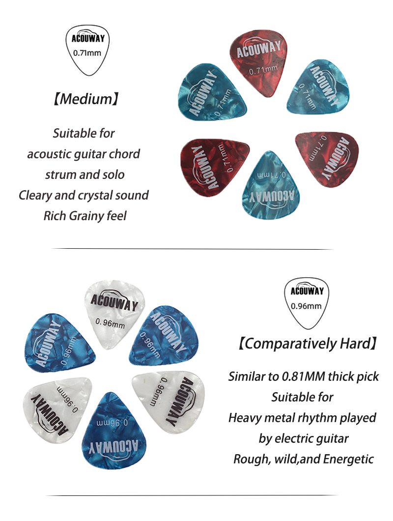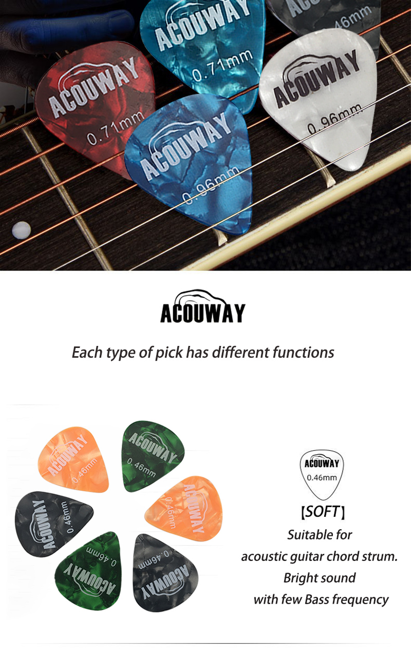 Craftmanship: Acouway celluloid guitar picks are cut and punched form the high-quality celluloid sheets