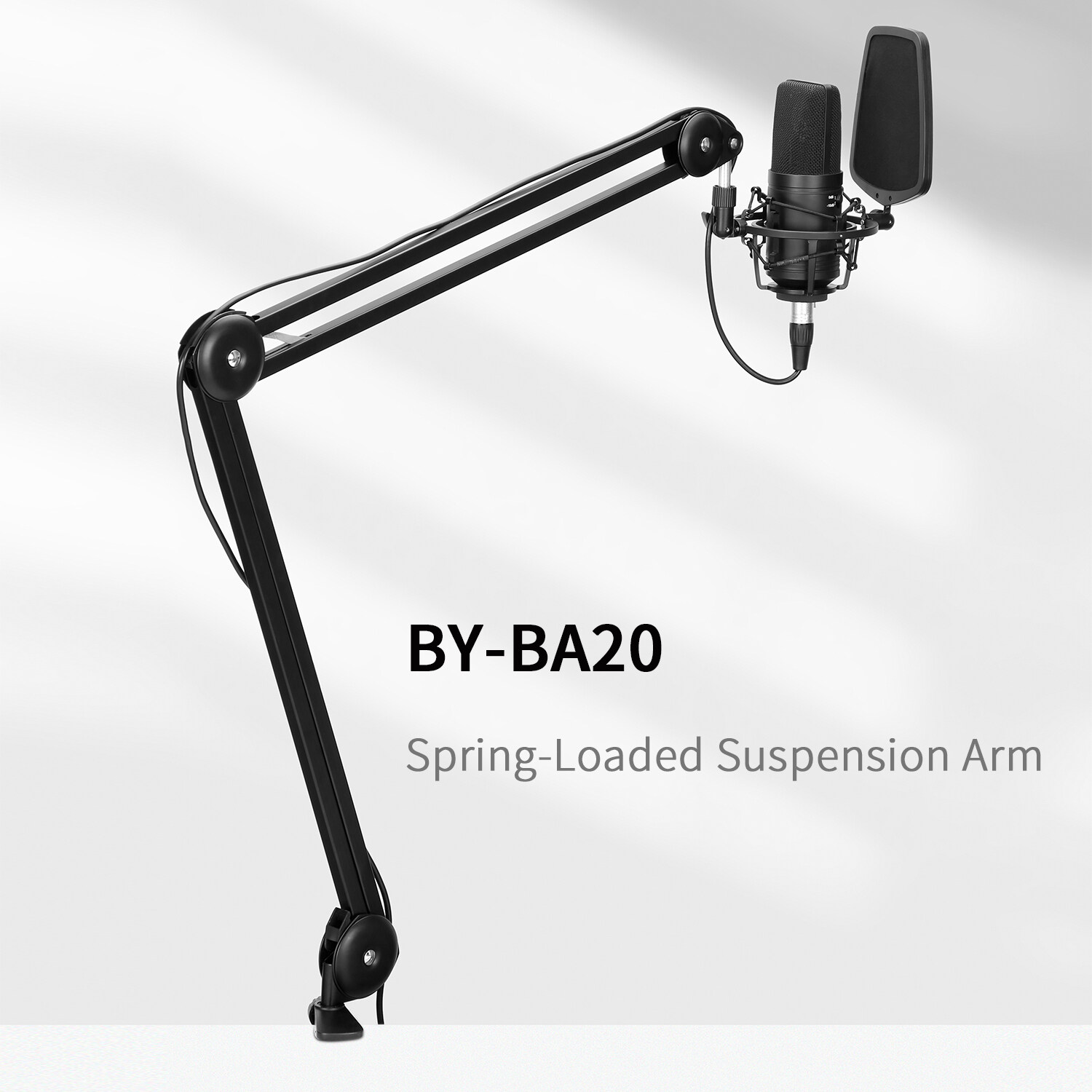 The BOYA BY-BA20 is a microphone boom arm,giving users with experience improvements when using their microphone. It can provide a maximum arm reach of 21,7"(horizontal length)/24"(vertical height).The boom arm can be attached to a desk via its C-clamp mount,which can offers a stable placement on desktop operation.With its hidden-channel cable management,this boom arm is very ideal for broadcast applications like podcasting, live streaming,content creation and more,Also,it offers a 5/8" to microphone weighing up to 1kg(2.2lb).