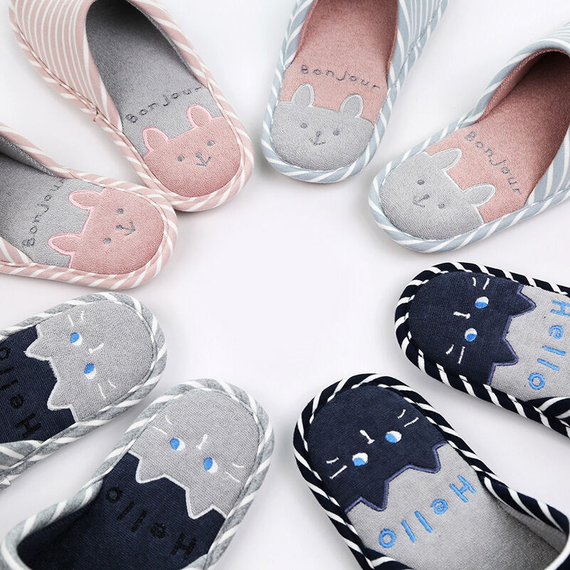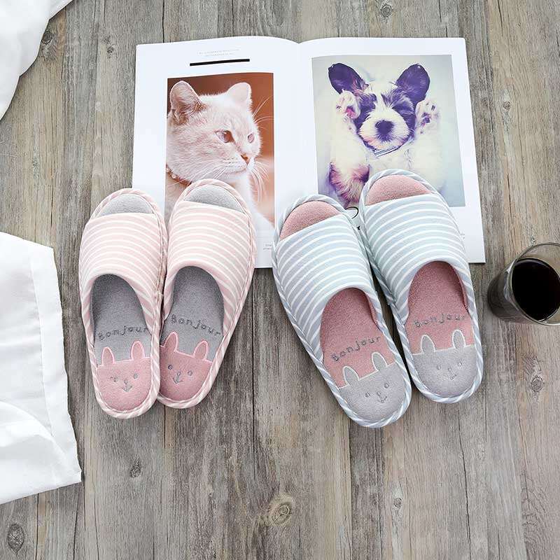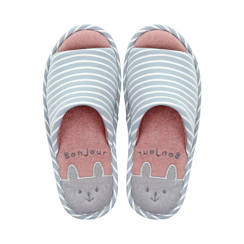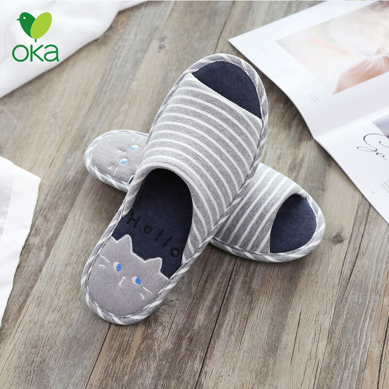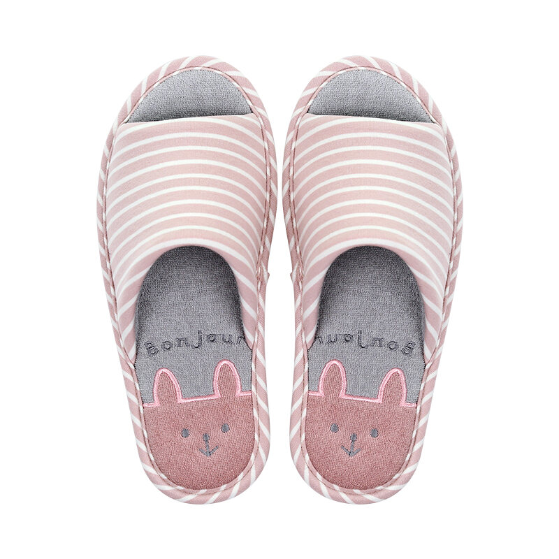 Japanese Oka Spring and Autumn Home Indoor Couple Open Cotton Slippers Cartoon Striped Men's and Women's Home Non-Slip Shoes
