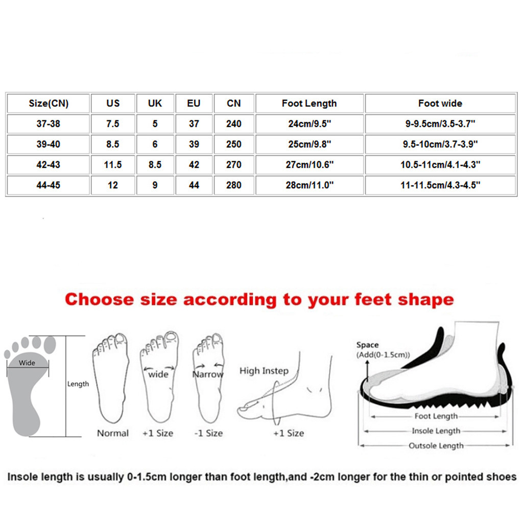| Size(CN) :42-43 | US:11.5 | UK:8.5 | EU:42 | CN:270 | Foot Length :27cm/10.6" | Foot wide :10.5-11cm/4.1-4.3" |