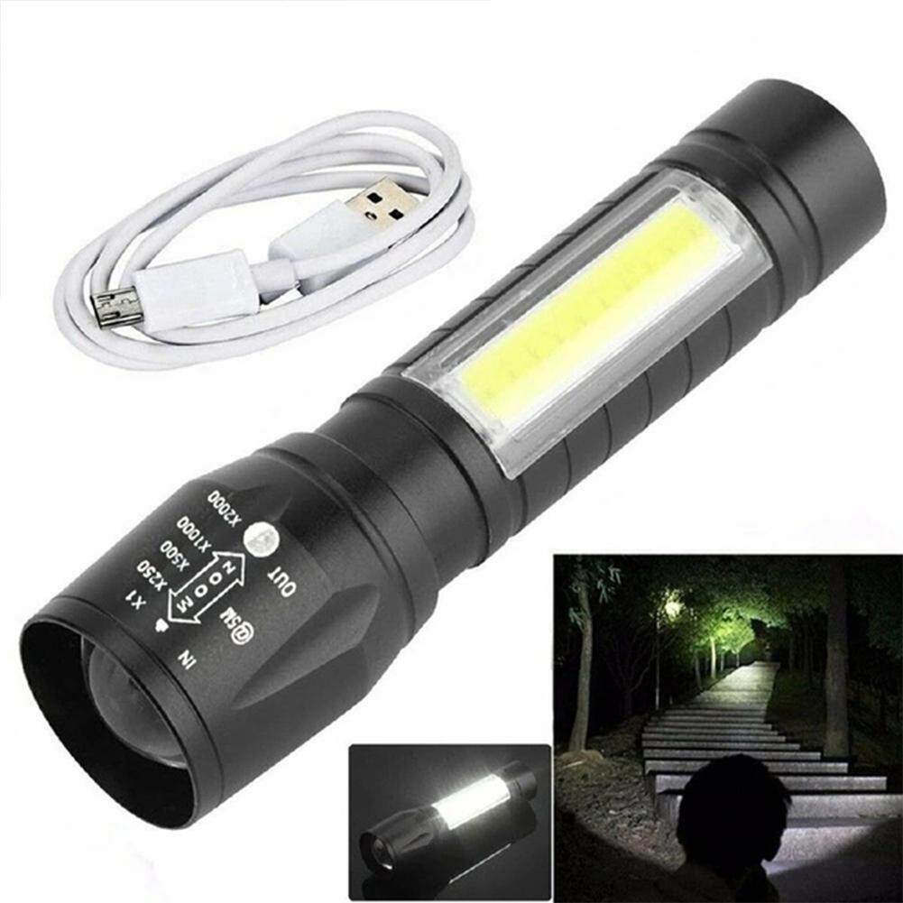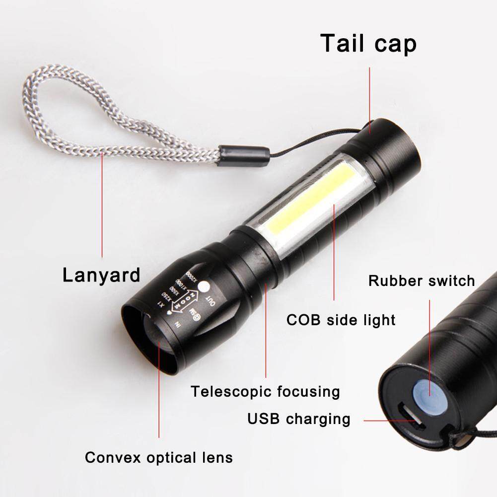Powerful Zoomable USB Rechargeable Flashlight Super Bright torchlight T6 led flashlights With COB Side Light Portable Camping Light Strong light Torch light