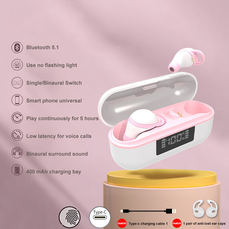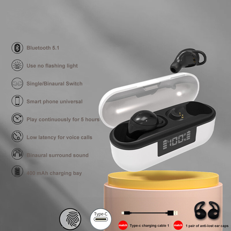 Bluetooth Invisible Earphone Mini In-Ear Wear Wireless 5.1 TWS Headset No Delay Waterproof Stereo Sports Headphones with Mic