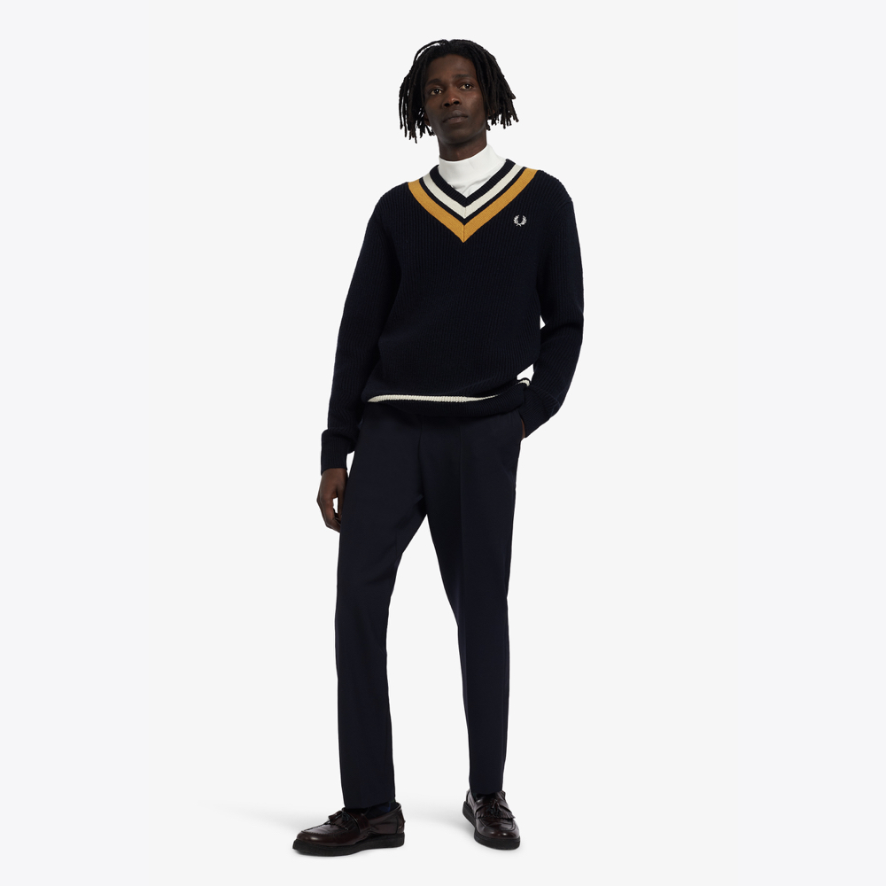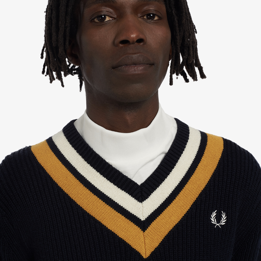 Fred Perry K2544 Striped V Neck Jumper - (Navy)