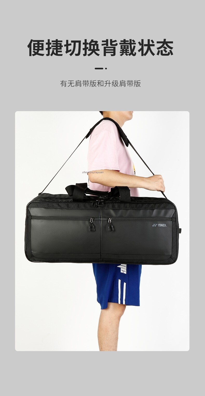 Zacro[Ready Stock] Y-onex 9332 Badminton Bag Double Zips Bag with Shoes Compartment Shoe Bag+ 2 Main Packets 2 Sides Pockets +1 Sling Straps Maximum capacity can hold 6 badminton rackets