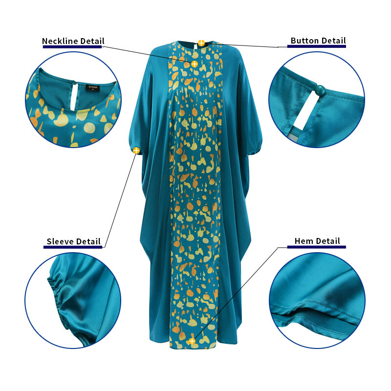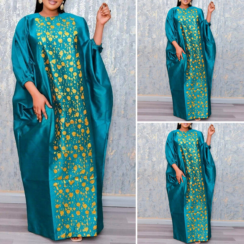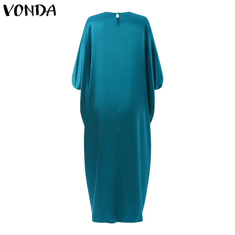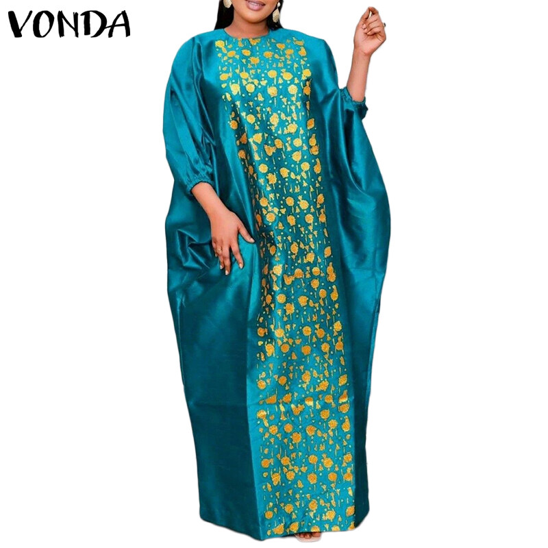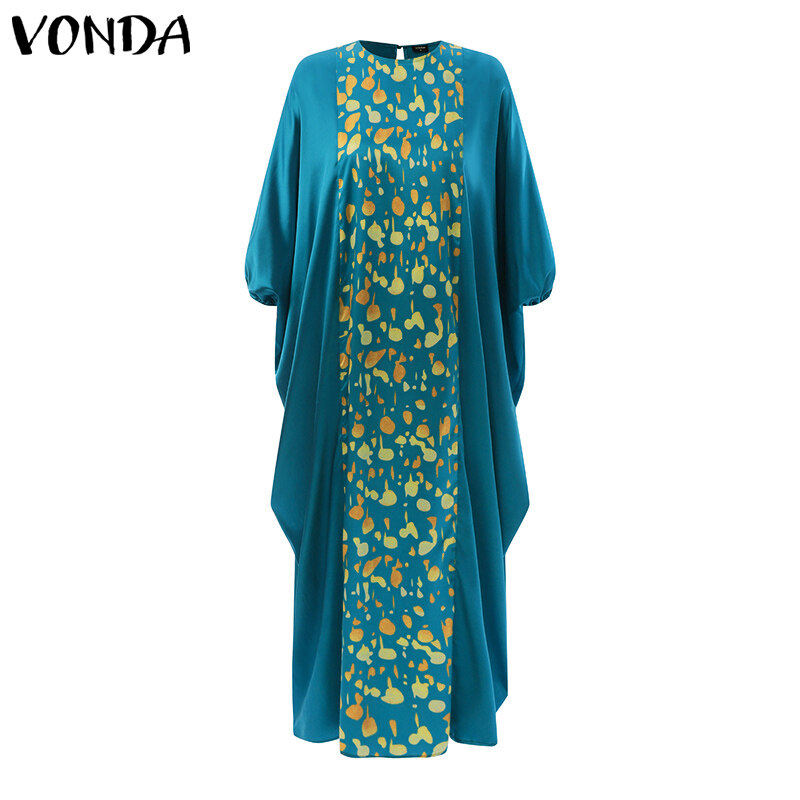 VONDA Women Kaftan Printed Dress Batwing Sleeve O Neck Casual Loose Autumn Maxi Dress (Plus Size)