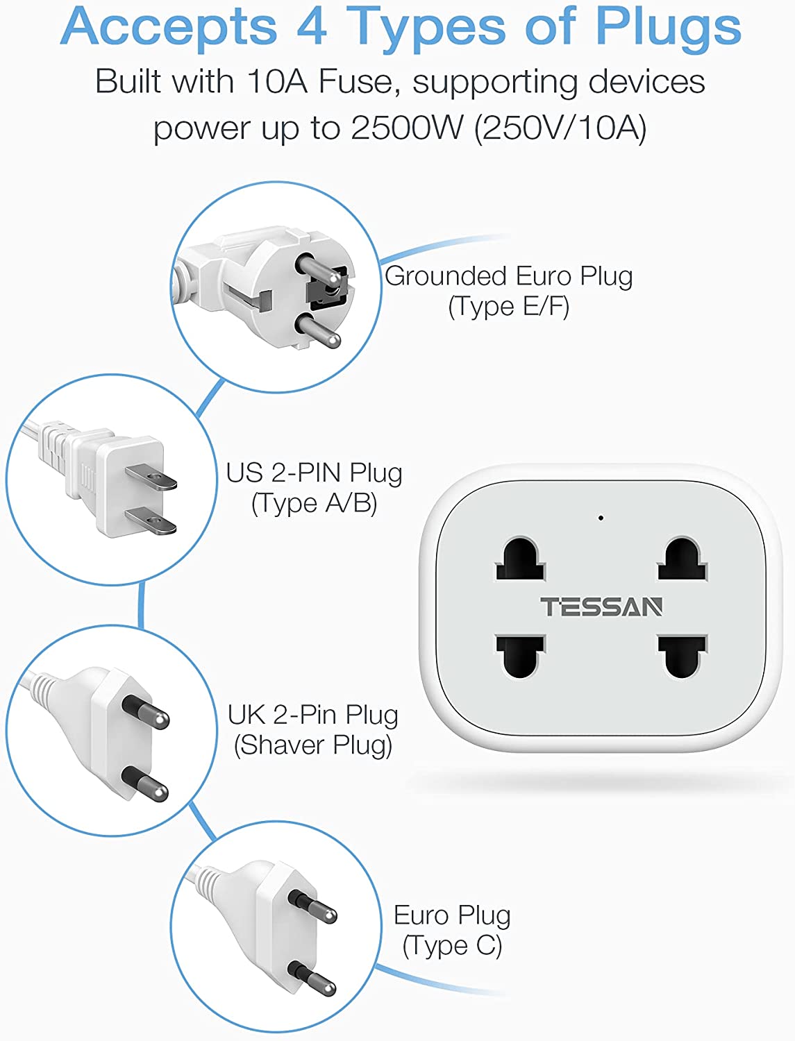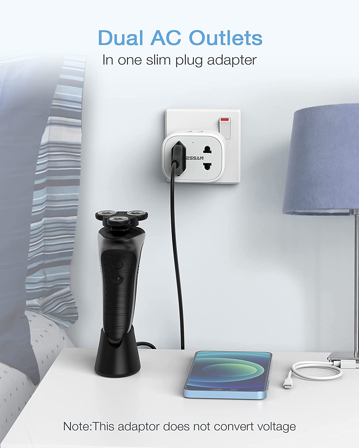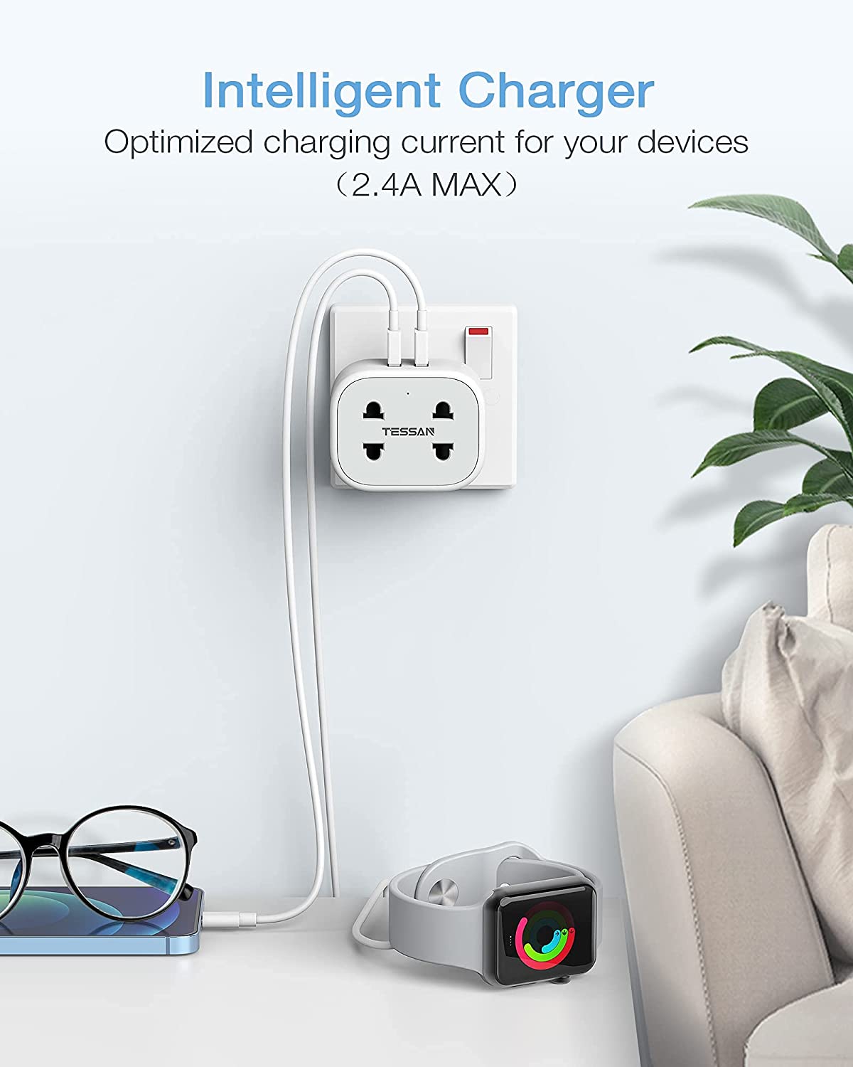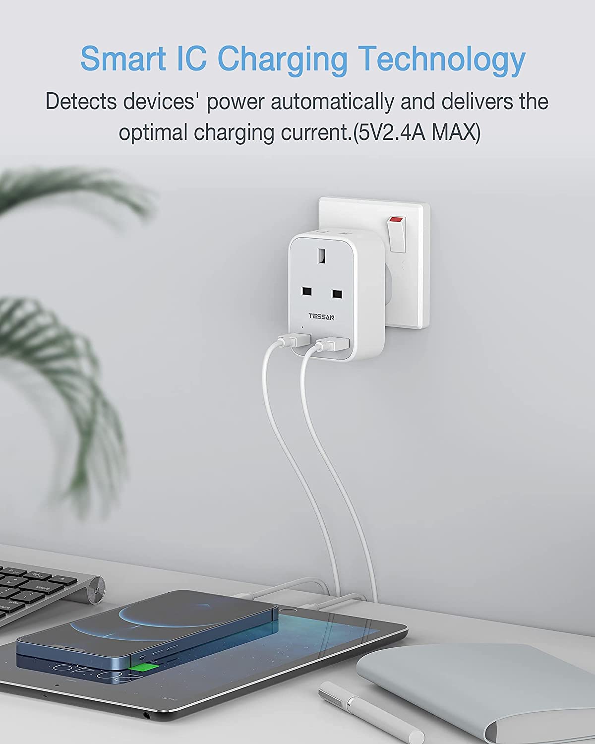 TESSAN 2 Way Shaver Plug UK 2 Pin to 3 Pin10A Fuse Electric Shaver Adaptor with 2 USB Ports and 2 Outets Razor Plugs Bathroom Two to Three Prong Charging Tooth Brush Plugs Adapters Electrical Shaving