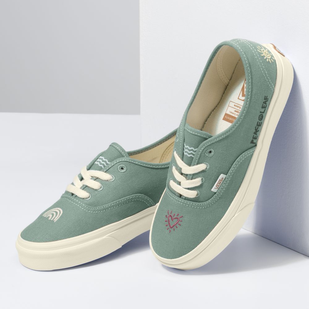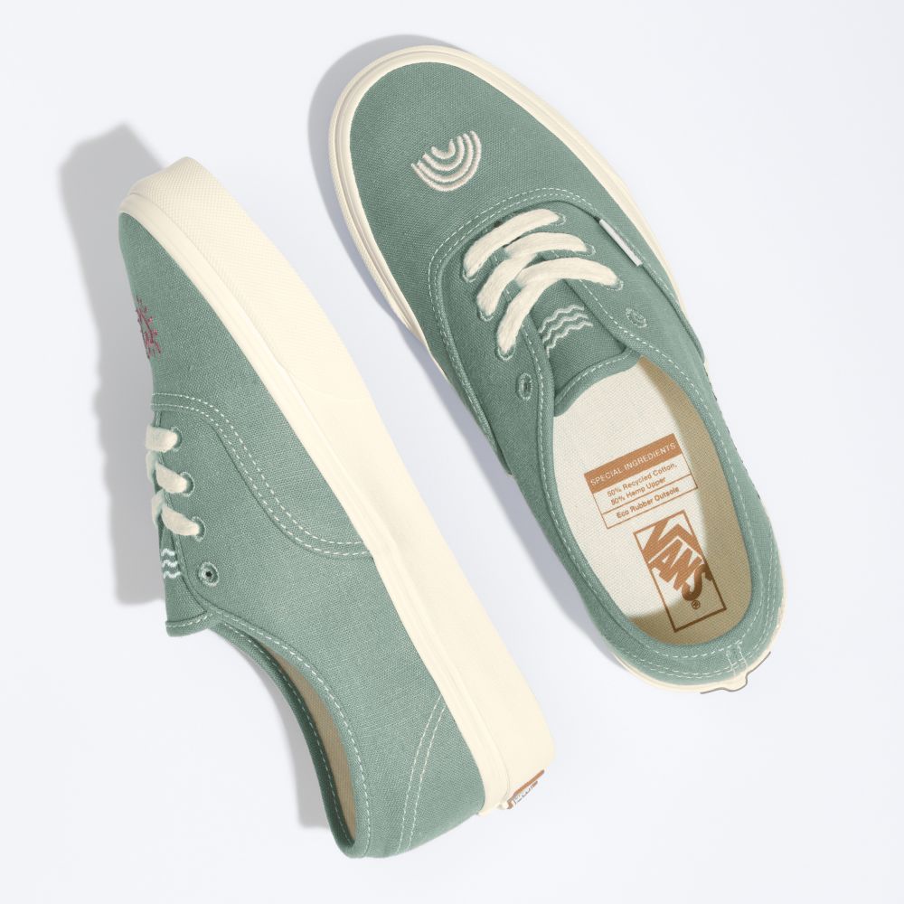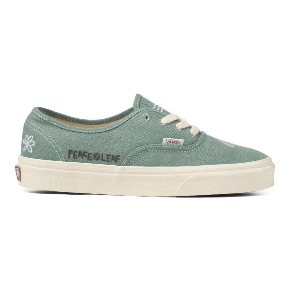 • From 100% organically grown cotton canvas uppers to a responsibly sourced natural rubber outsole that still maintains the grip and durability that Vans has been known for since 1966, the Eco Theory Authentic combines environmental consciousness with the classic Vans style you love. This iconic lace-up shoe also includes metal eyelets, renewable jute laces, and embroidery.