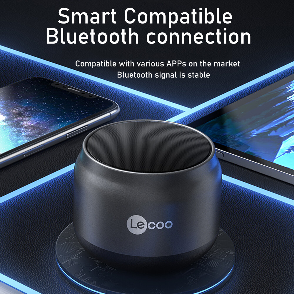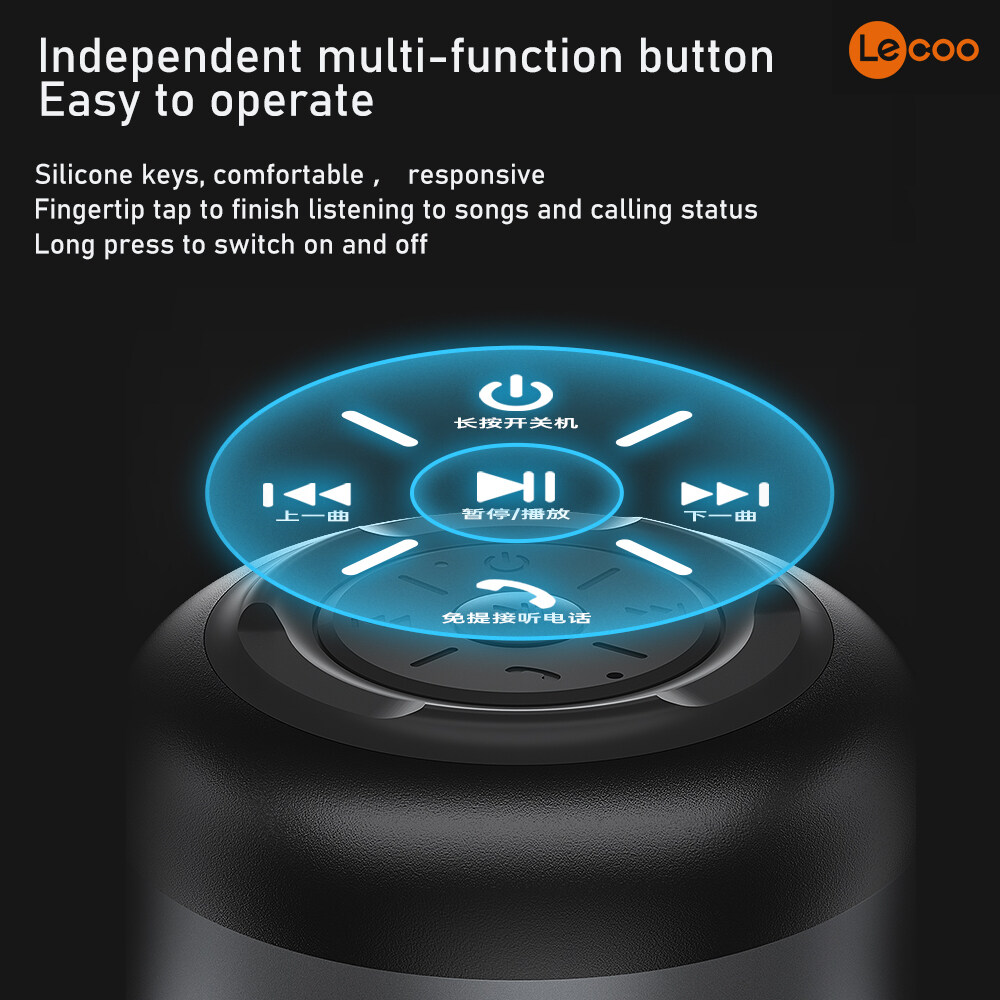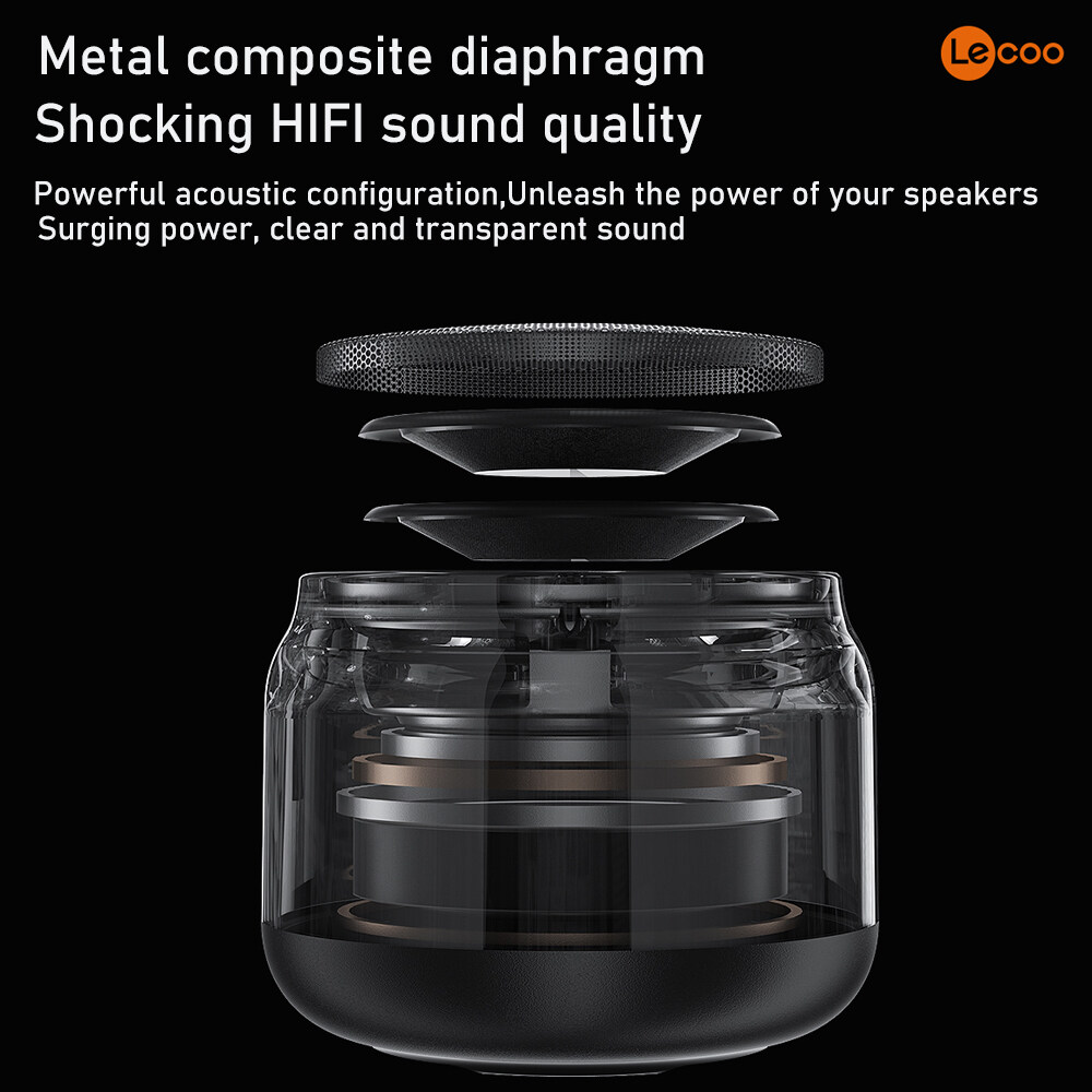 LECOO DS106 mini portable speaker multi-function bluetooth speaker compact lightweight cool lighting effect 360-degree stereo surround sound heavy bass for laptops tablets desktops TVs mobile phones