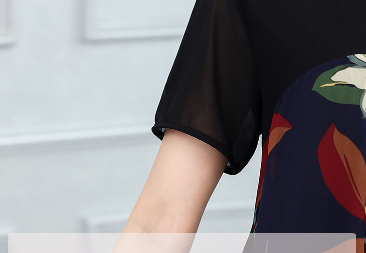 Large size dress women's summer Korean fake two-piece dress age-reducing short sleeve round neck A-line skirt slim mid-length skirt