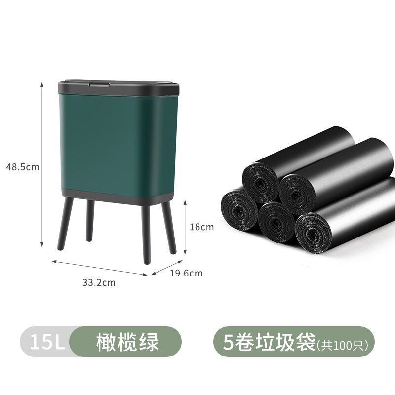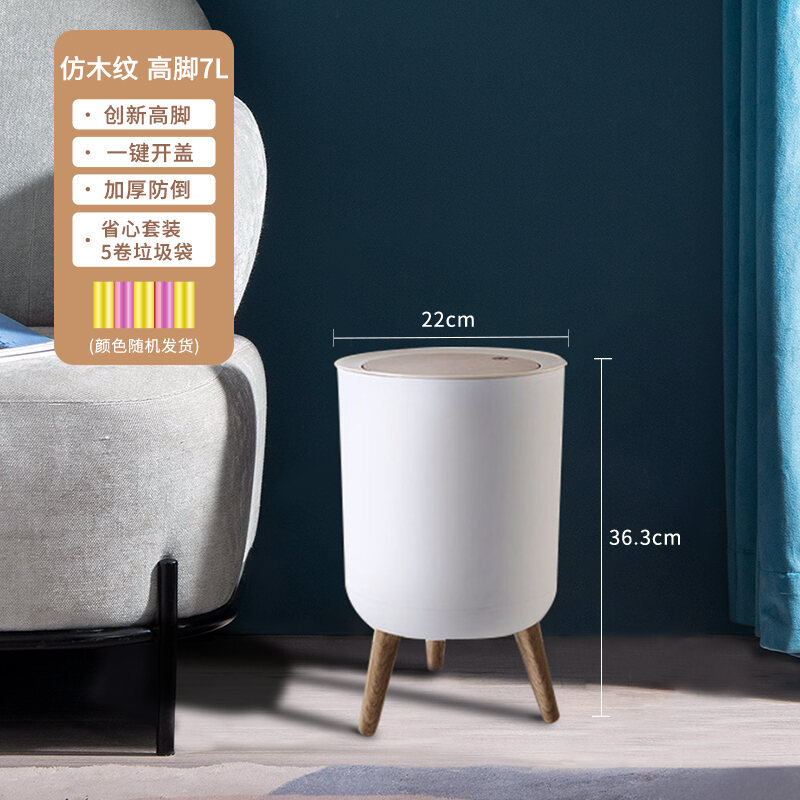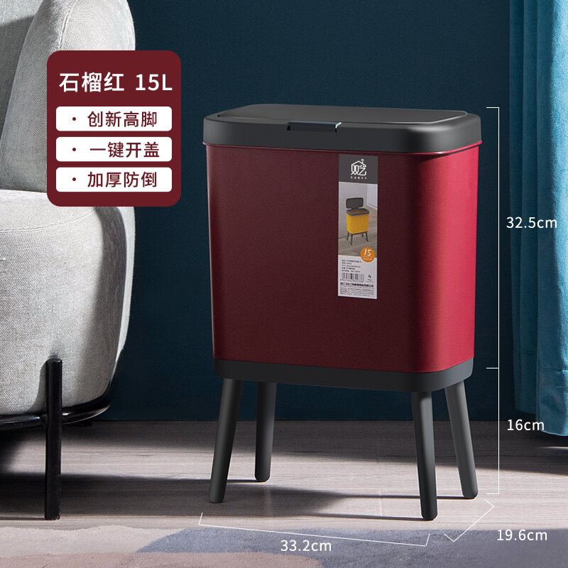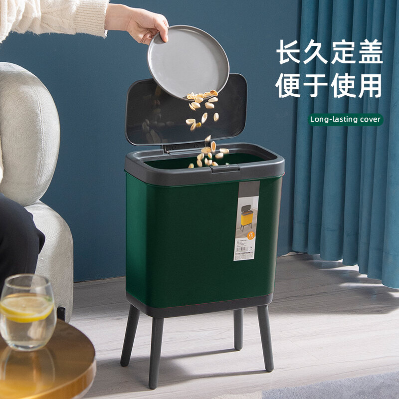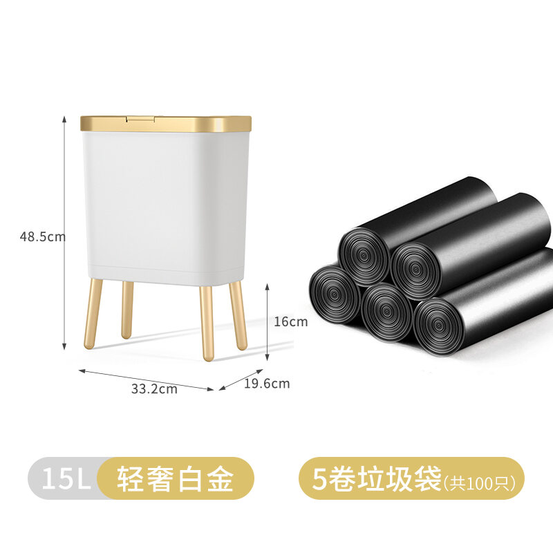 Kitchen Trash Can Household Toilet Bathroom Bedroom Large Capacity Living Room with Lid Light Luxury Press High Leg Trash Can