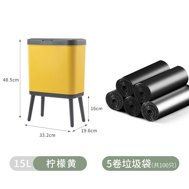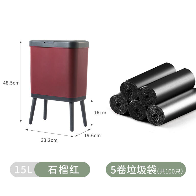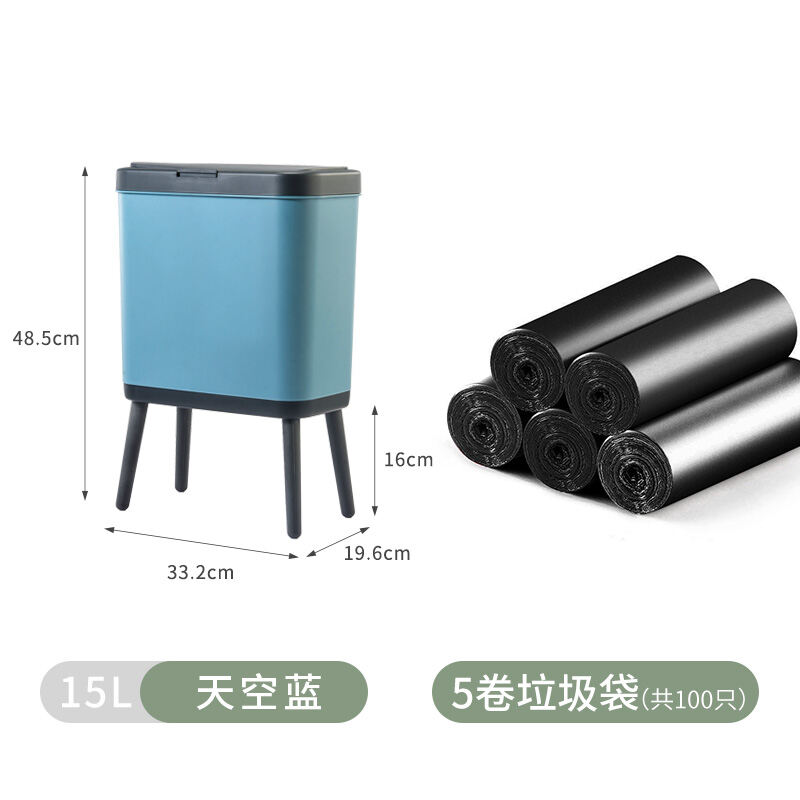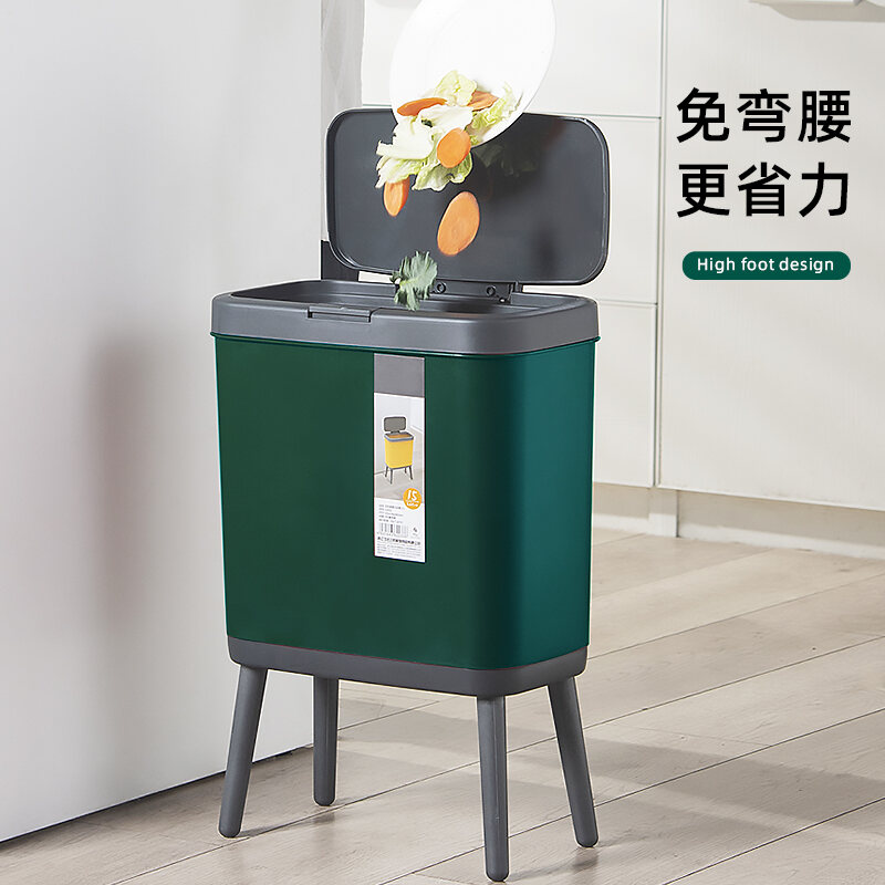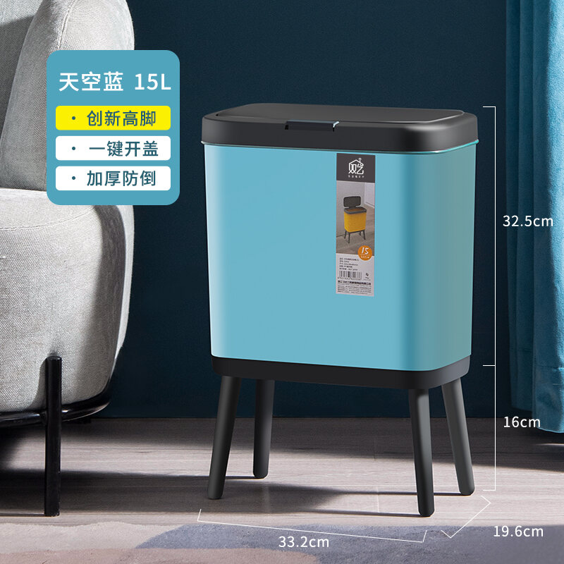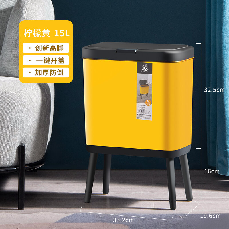 Kitchen Trash Can Household Toilet Bathroom Bedroom Large Capacity Living Room with Lid Light Luxury Press High Leg Trash Can