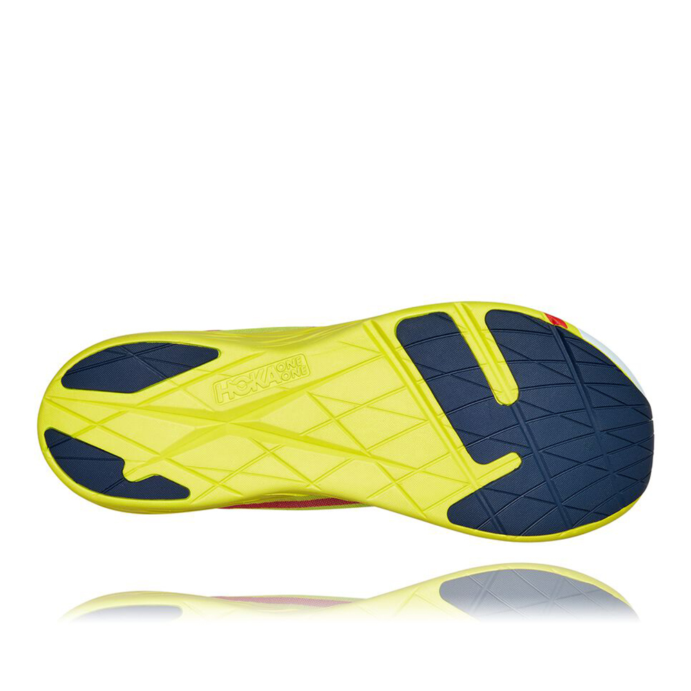 One of the most energetic shoes HOKA has launched to date, the Rocket x is an incredibly lightweight, insanely responsive racer geared for elite athletes. The lightest racing flat in the HOKA lineup, this all-speed shoe is engineered to launch off the line. Primed for shorter distances, the Rocket x utilizes the same responsive carbon fiber plate as the Carbon X, delivering a fast, efficient and propulsive ride. Built for race day, this speed dagger employs the lightest foam in HOKA history, a soft midsole carrier, breathable mesh upper and lightweight, rubberized foam outsole that reduces weight. Speed weaponry at its best, adrenaline will be pumping when lacing up this impossibly fast race flat.