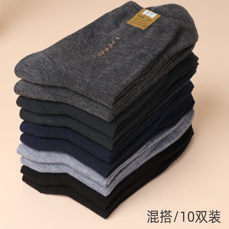 10 Pairs of Labor Protection Socks High Waist Tube Dad Socks Men Hose Autumn and Winter Thickened Old Man Grandpa Winter Old Man Middle-Aged and Elderly