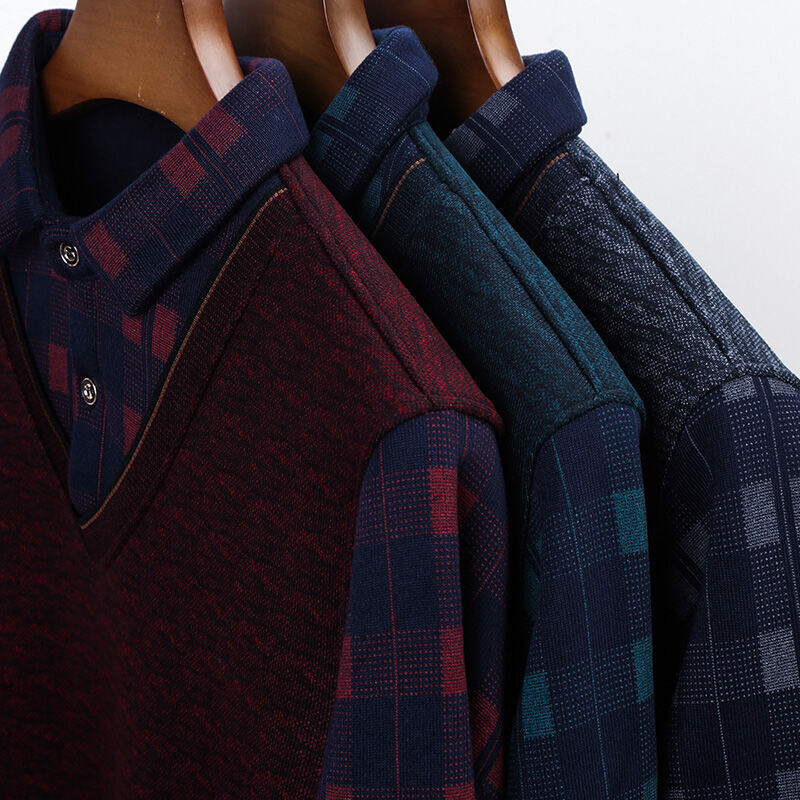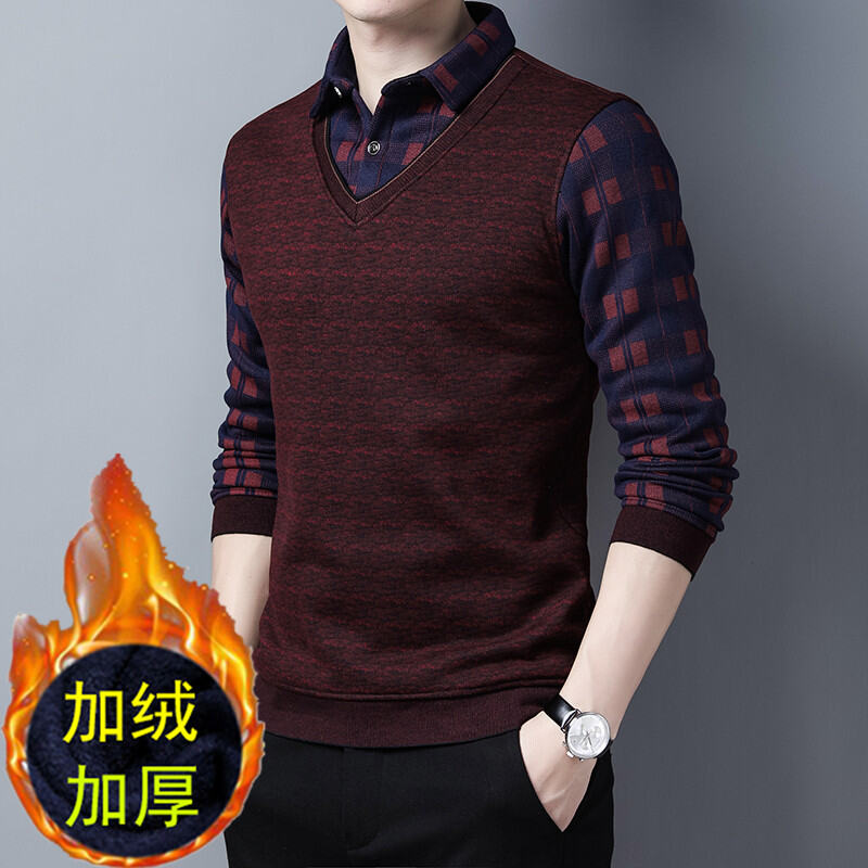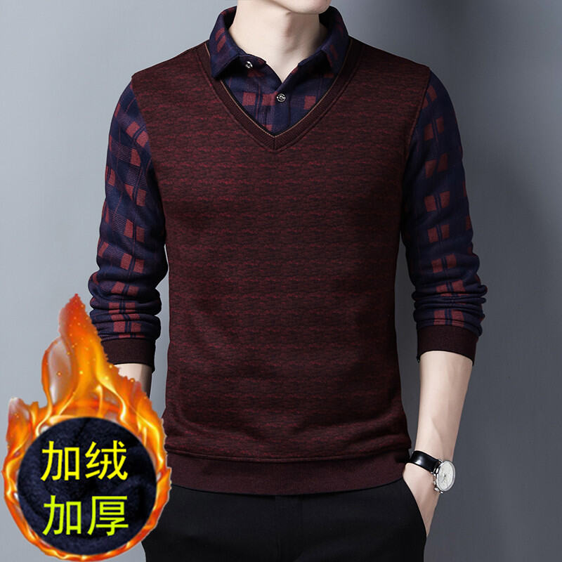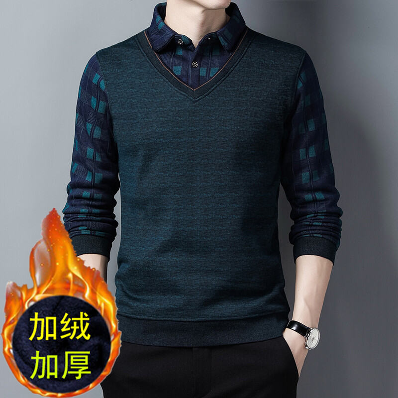Dad Winter Fleece-Lined Thickened Sweater 40-50 Years Old 60 Men's Fake Two-Piece Sweater Middle-Aged and Elderly Warm Clothes