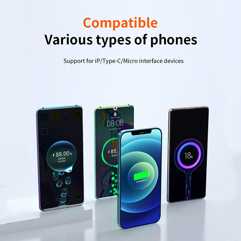 Product features: support for Huawei 66W/40w super fast charge, oppo vivo dual-engine flash charge 65w flash charge, support power 10V/6A 10V/4A 4.5V/5A 9V/2A 5V/2A, Apple interface 2.4A fast charge, Xiaomi and other machines type fast charge.