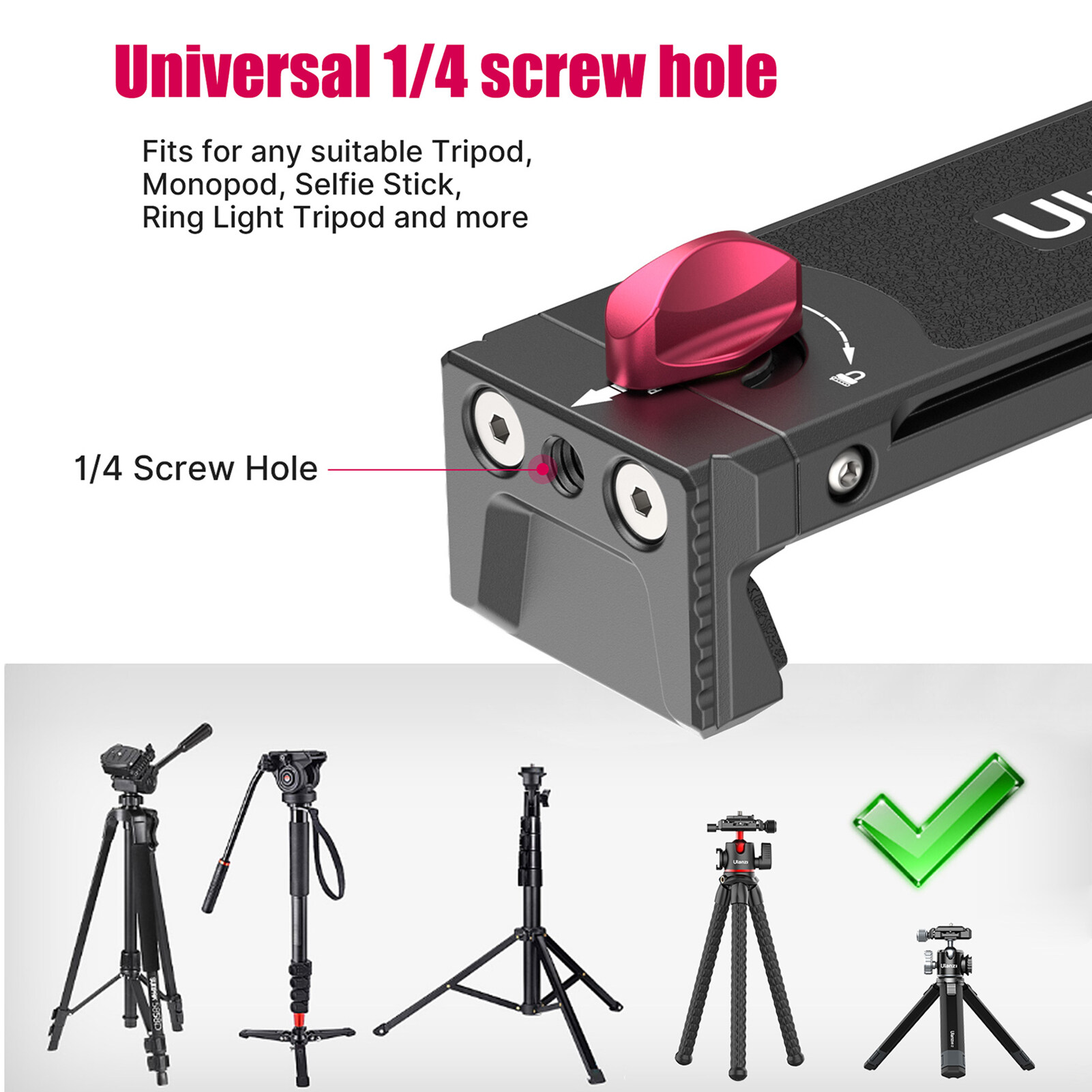 Multiple Tripod Mount Methods: 1/4 inch screw hole on the bottom for tripod, monopod or other bracket mounting, and bottom and side Arca-Swiss mounts for connecting to tripod ballhead.