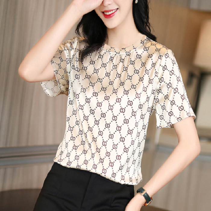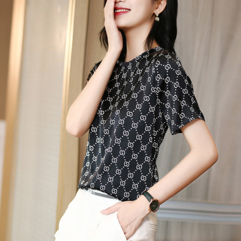 Early autumn new fashion short sleeved t-shirt female 2021 new foreign style fashionable age reducing printed Korean top issued in stock