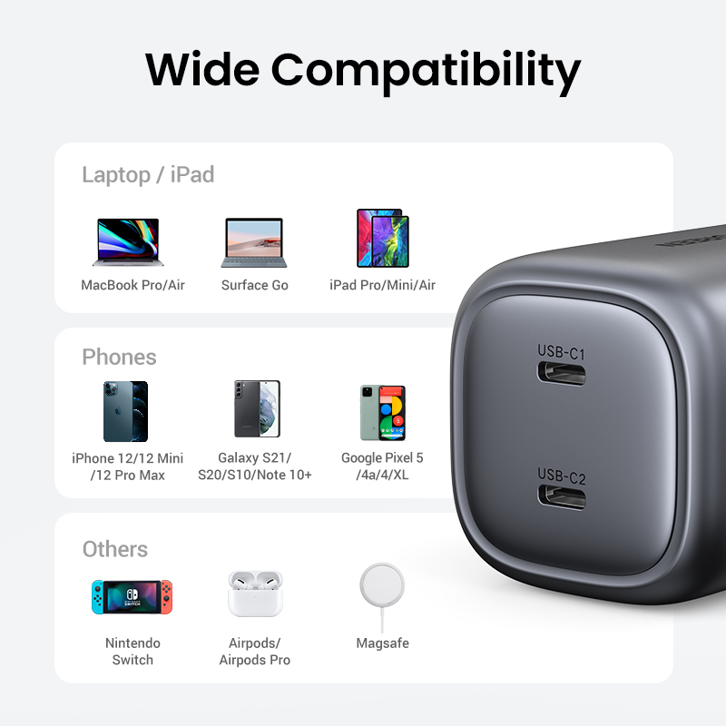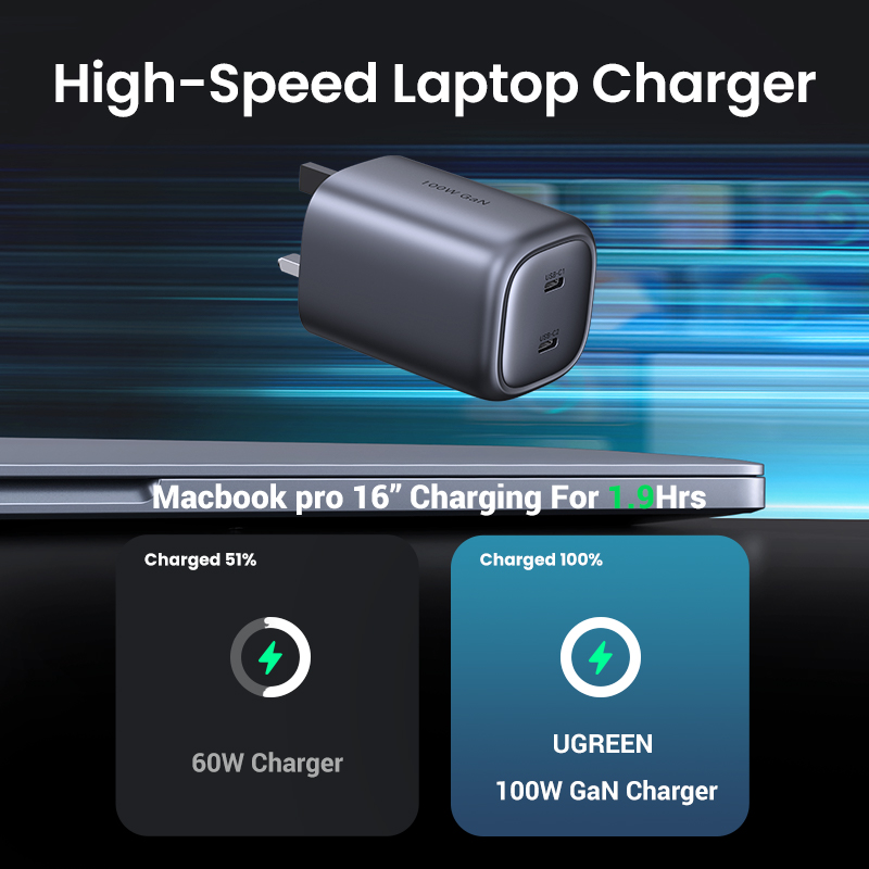 UGREEN 100W GaN 2-Port Fast Charger 2 Type C USB C Compatible for MacBook Pro/Air, Dell XPS, iPad Pro, Samsung S23 S22 Ultra, iPhone 14 13 Pro Max iPhone 14 Plus iPhone 12 11 Pro Max , Pixel, Xiaomi V