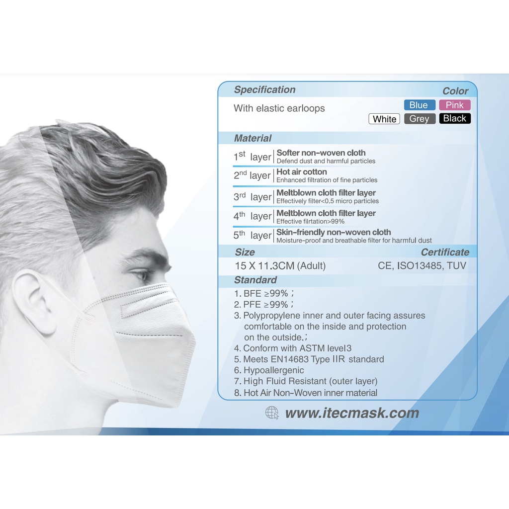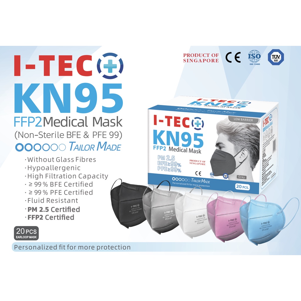 MADE IN SINGAPORE I-TEC KN95 FFP2 (Equivalent to KF94 N95) Medical 3D Mask 20pcs Individually Packed for Adult Men Women