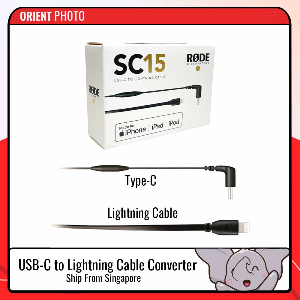 RODE SC15 Lightning USB Type-C to Lightning Accessory Cable 30cm (11.8") for Rode VideoMic GO II NTG Wireless GO 2