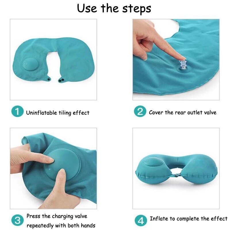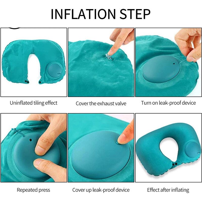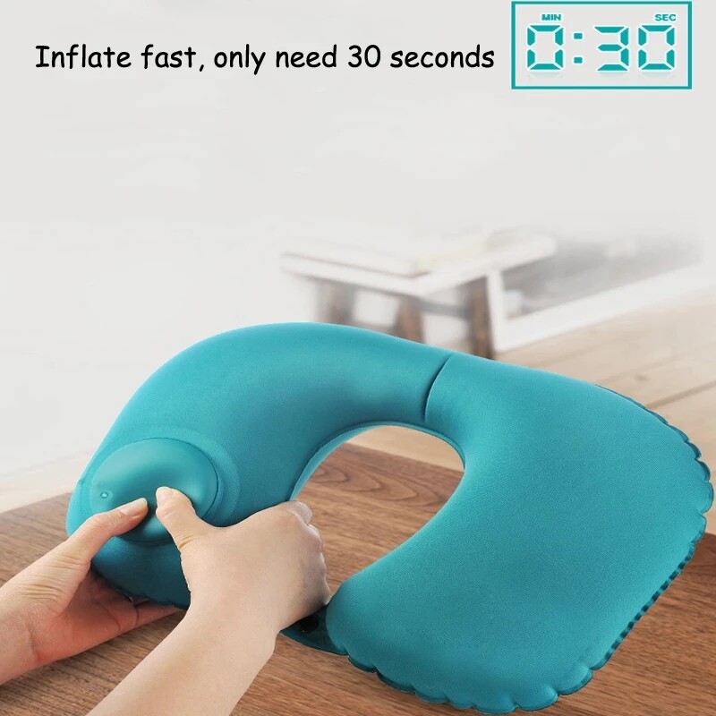 KIPRUN U-Shape Travel Pillow Automatic Air Inflatable Airplane Car Pillows Ring Pillow Folding Press Type Bed Pillows Neck Cushion