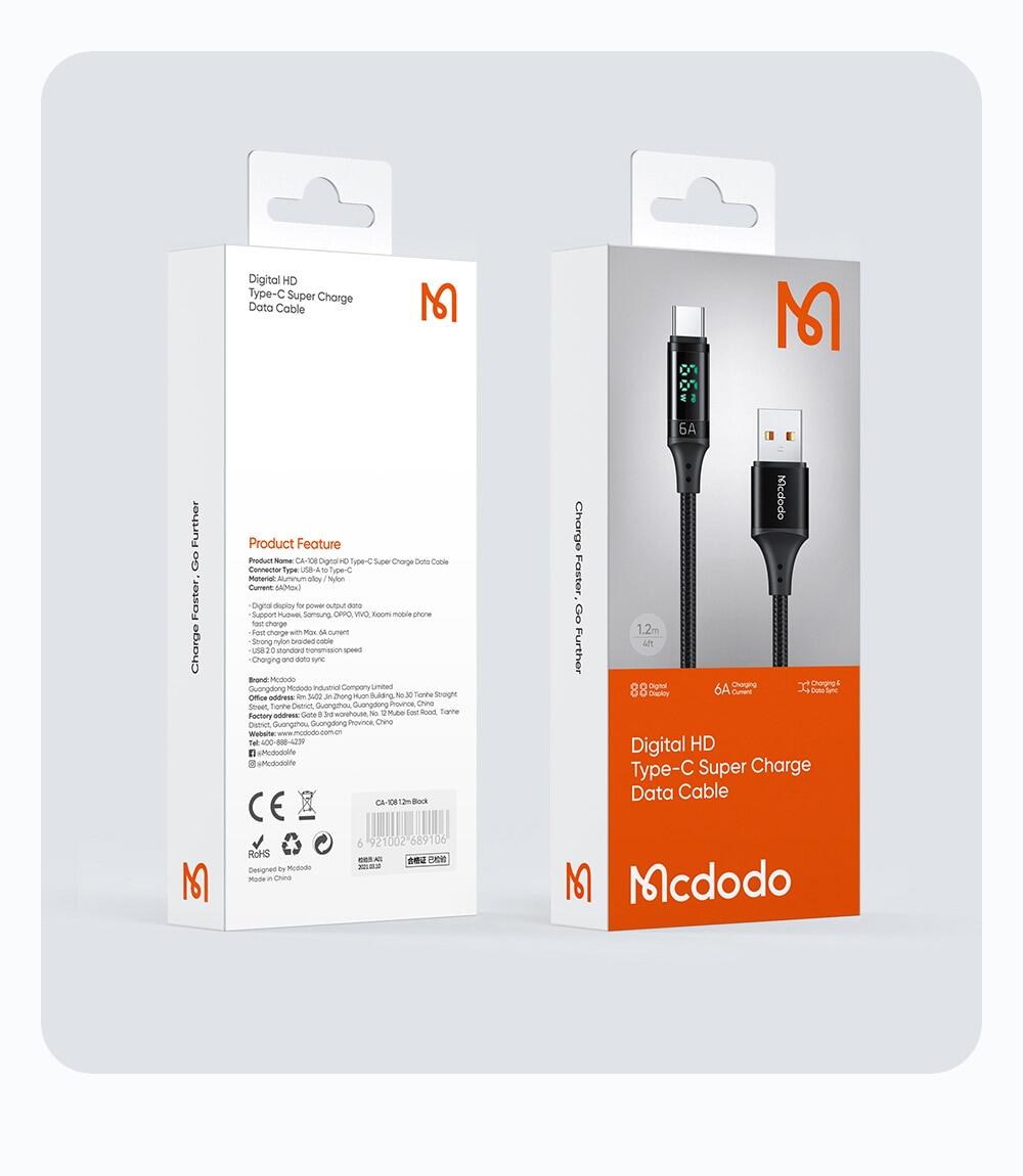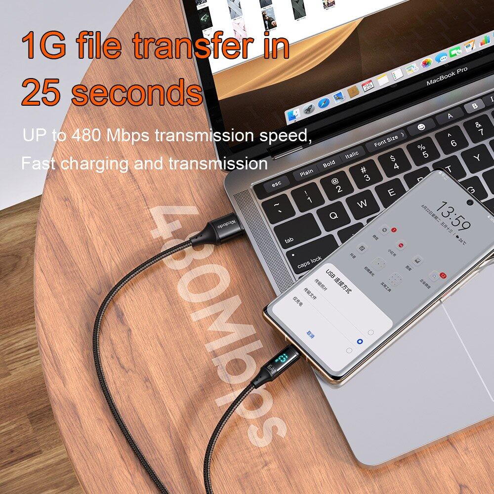 Mcdodo 66W USB Type C Cable For Samsung S22 S21 S20 Ultra Note 20 Huawei Mate 40 P50 P40 Xiaomi 11 6A Fast Charging Digital Display Mobile Phone Data Cord