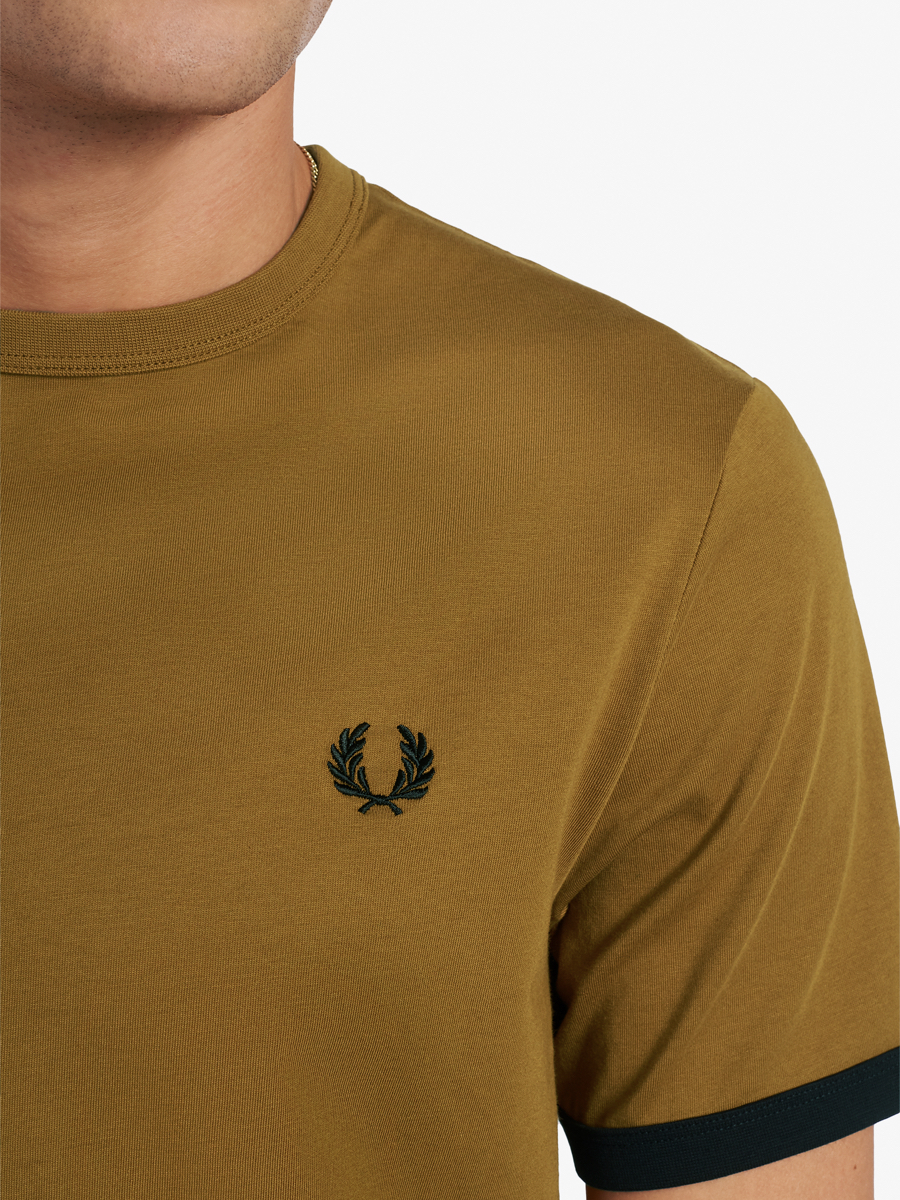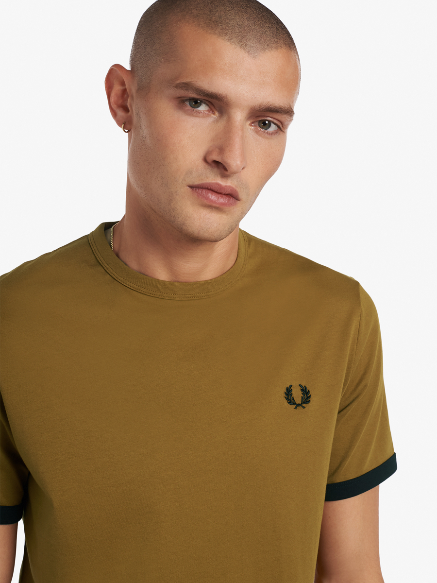 Originally worn as sports training gear, the ringer t-shirt was later adopted into the subcultural uniform. From the ‘70s and beyond, it was made with bold, contrasting colours and graphic prints. Ours adopts familiar Fred Perry tones.