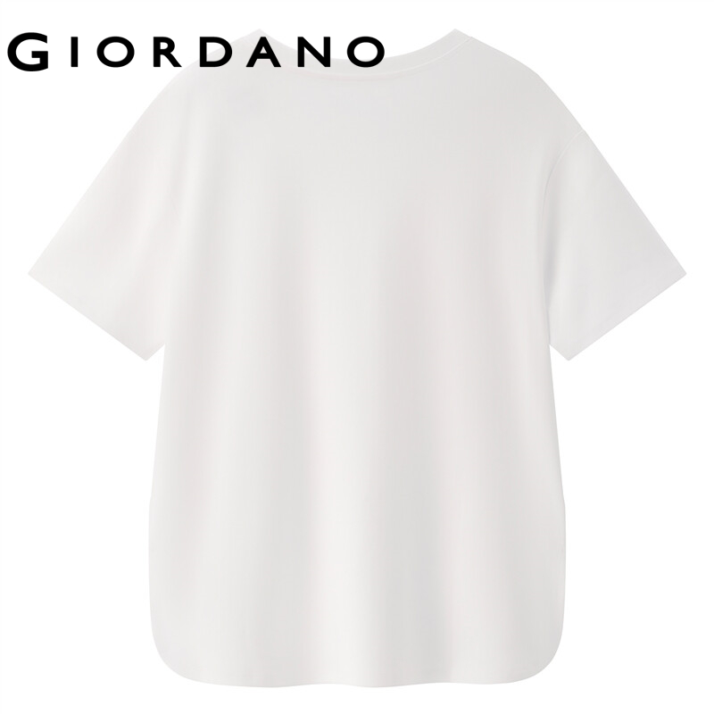 GIORDANO Women T-Shirts Long Design Solid Color Casual T-Shirts Crewneck 100% Cotton Short Sleeve Summer Relaxed Tops 05322386