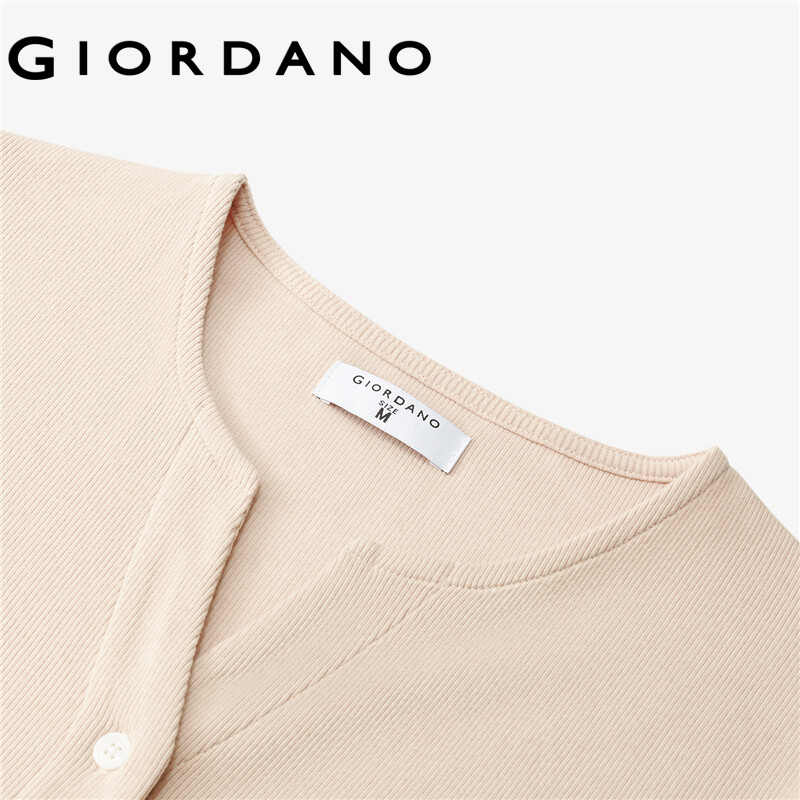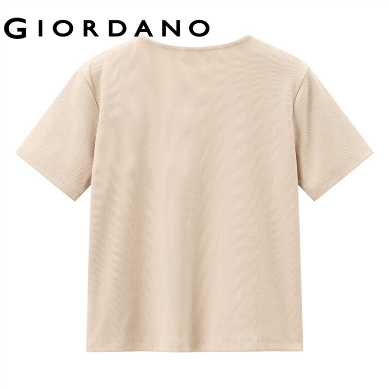 GIORDANO Women T-Shirts Button Closure Solid Color Casual T-Shirts V-Neck Summer Short Sleeve Relaxed Basic T-Shirts 13322206