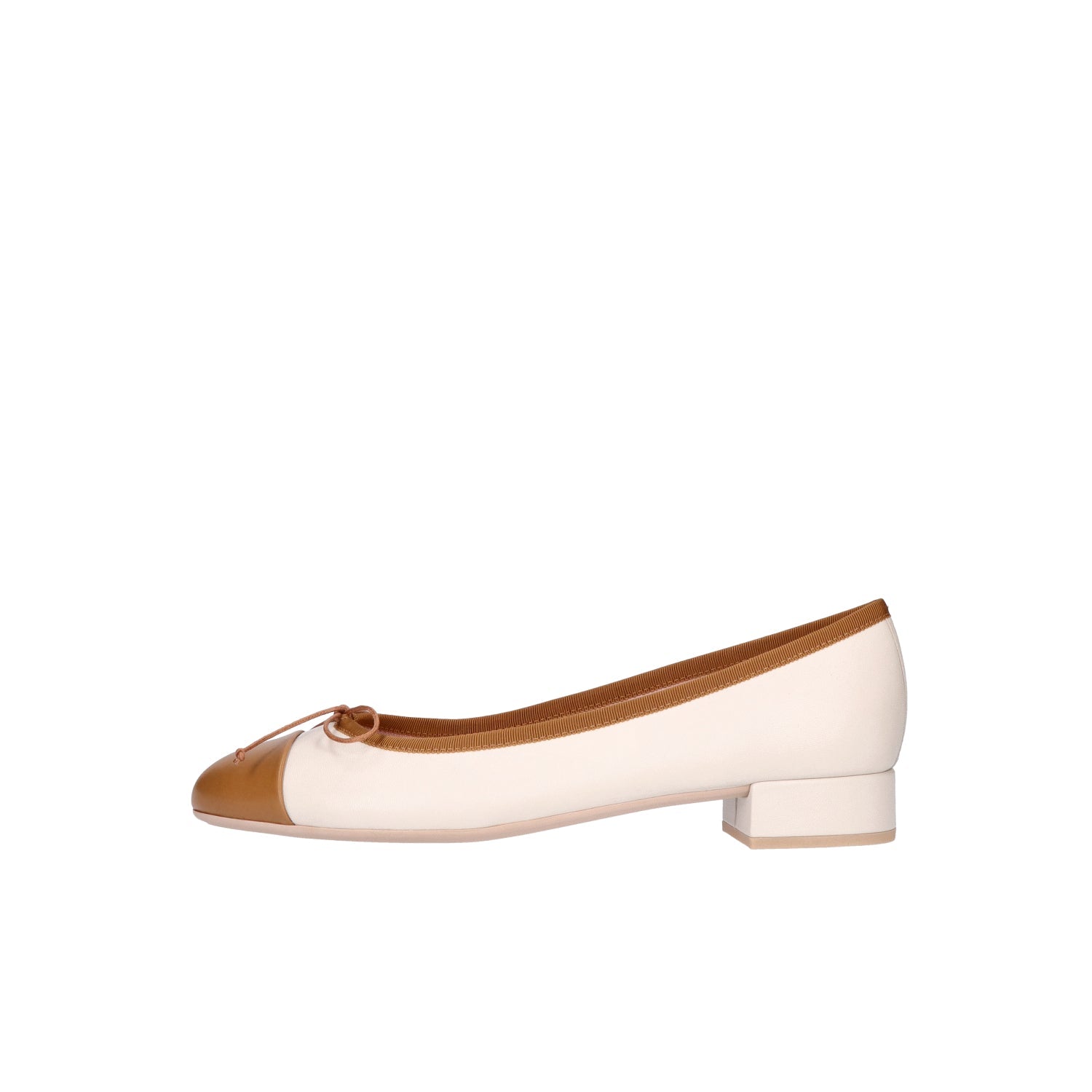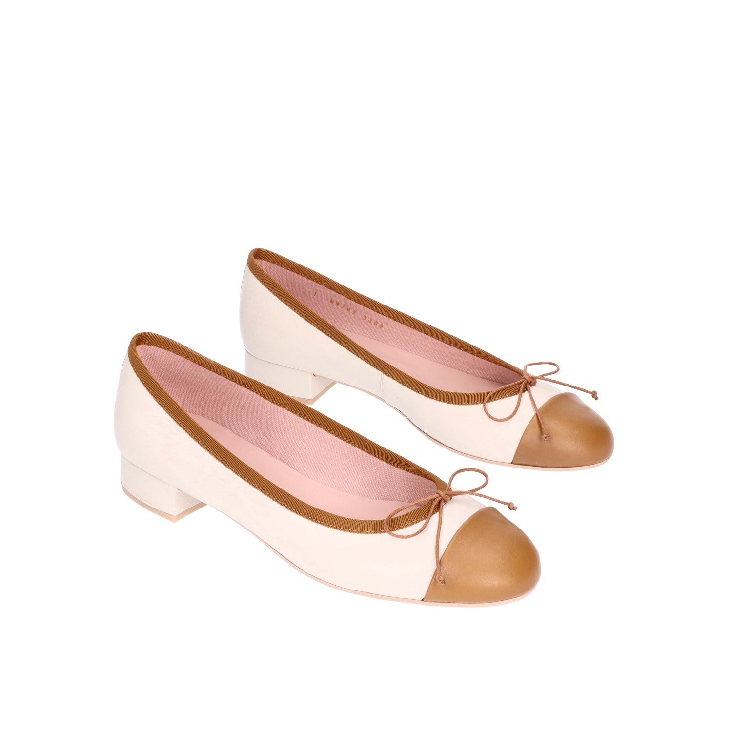 Round Toe Block Heel Ballerinas with Ribbon Detail, Rubber Sole and Leather Insole