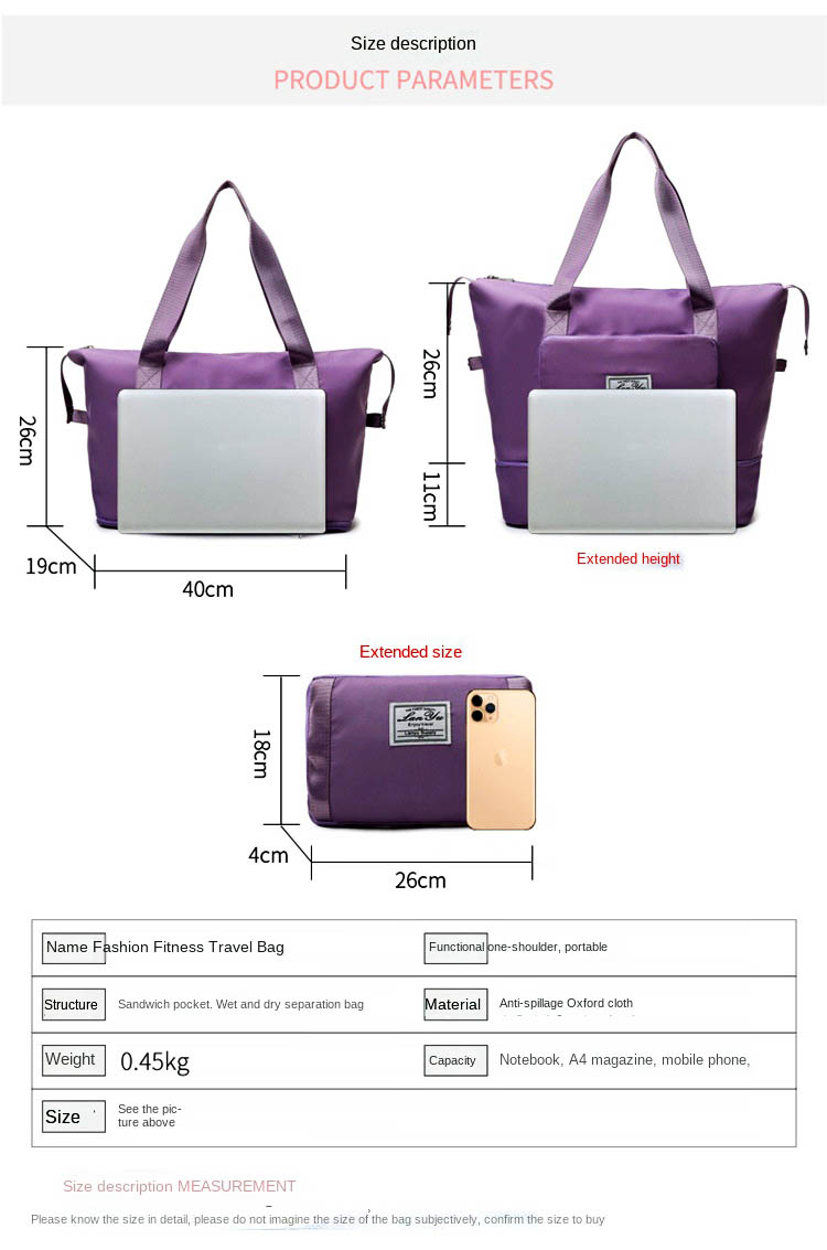 Large-Capacity Folding Travel Bag Foldable Travel Lightweight Waterproof Luggage Duffel Tote Bag Yoga Sport Crossbody Bag Women