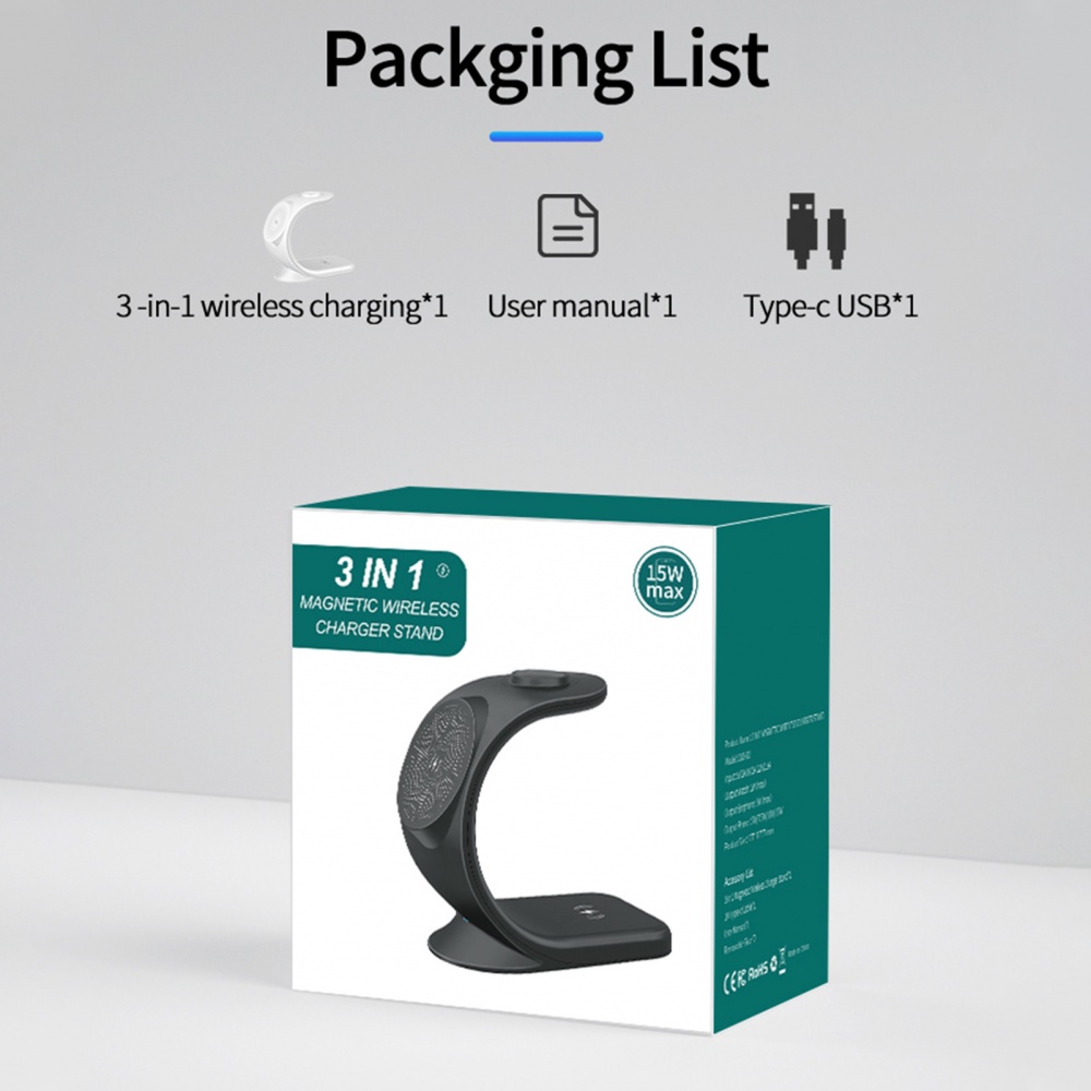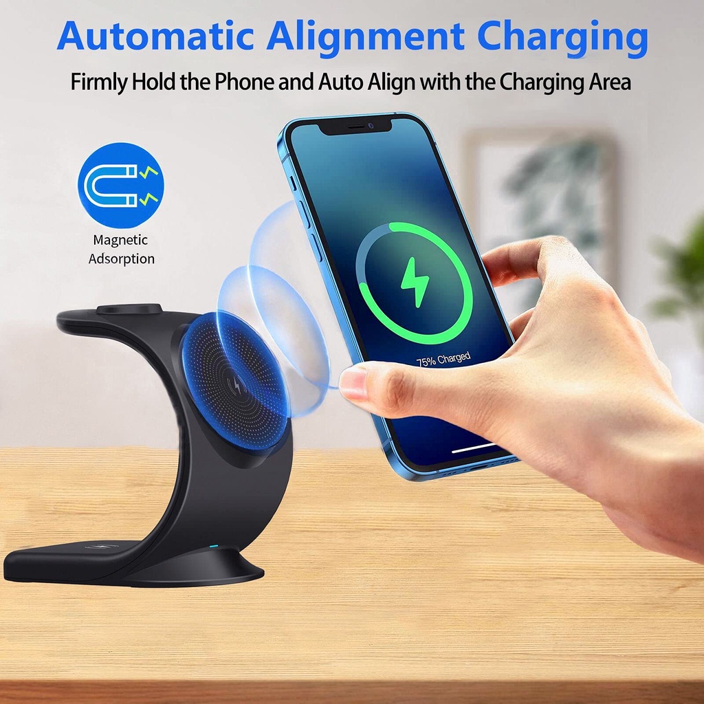 DESTRON Magnetic Wireless Charger for APPLE, 3 in 1 Qi Certified 15W Fast Charging Station for Apple iWatch iPods, iPhone Series.