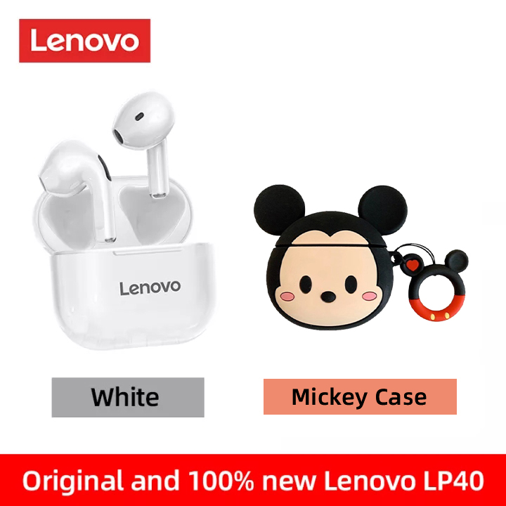 Lenovo LP40 TWS Mini Wireless Bluetooth Earphone Sports Gaming Bluetooth Earbuds Noise Cancelling Waterproof with Charging Box Mic Support Call Video IOS Android Universal