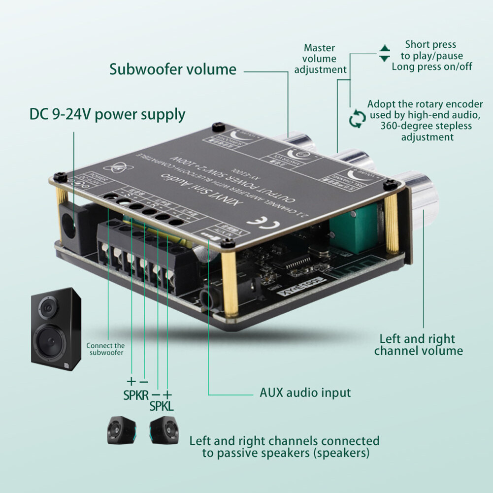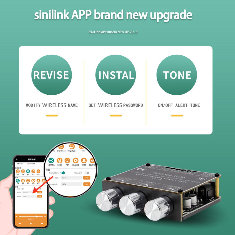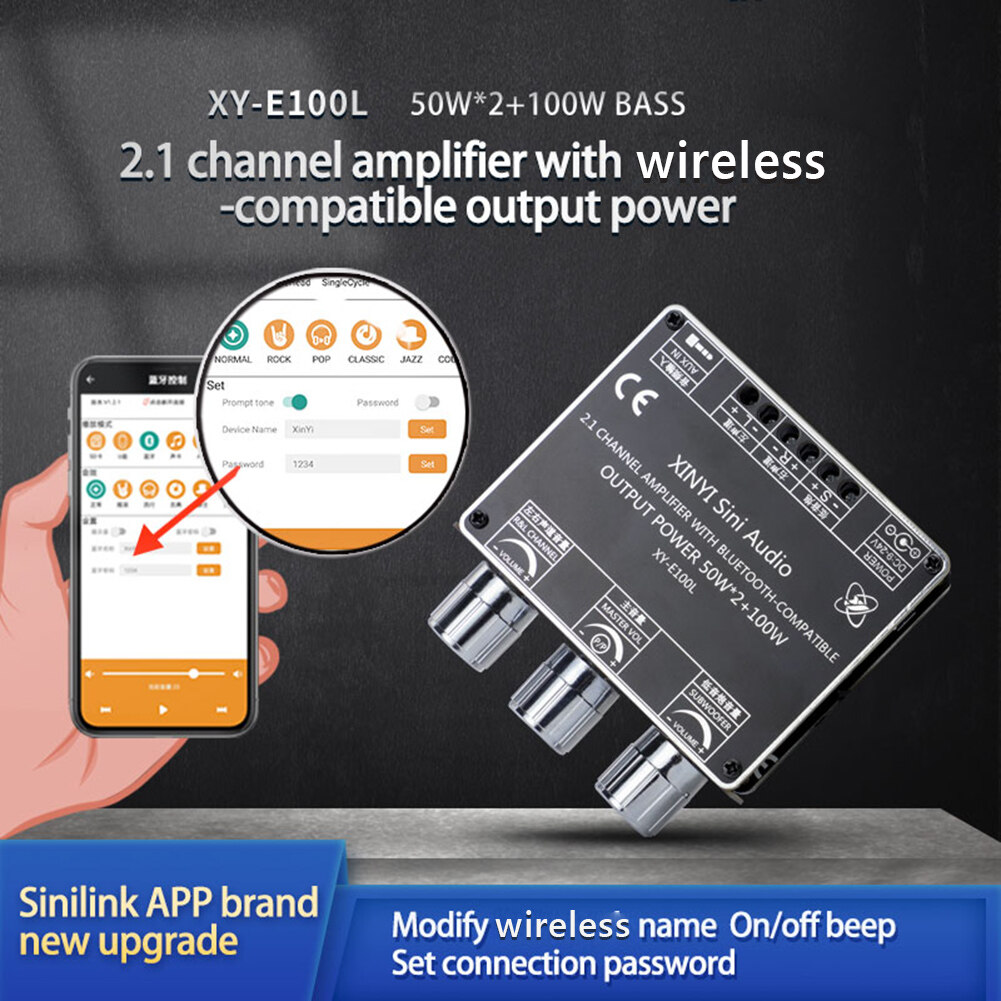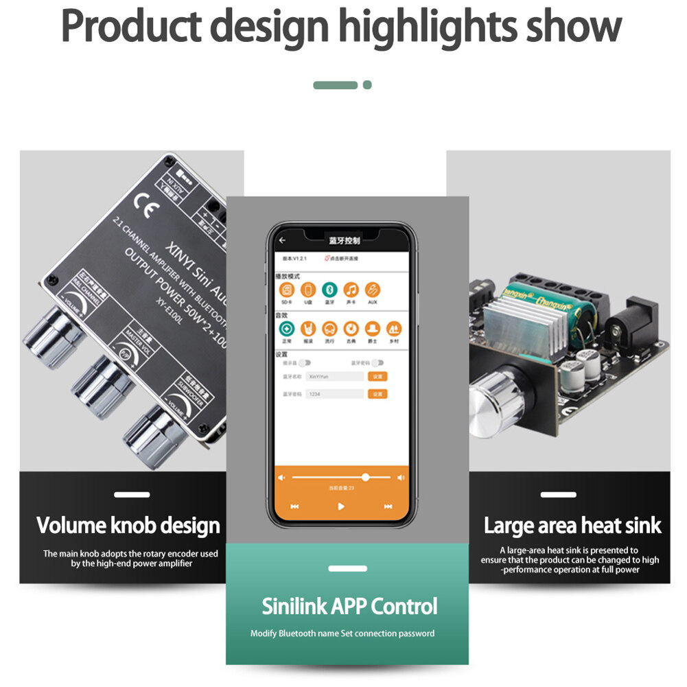 XY-E100L App Control 50Wx2+100W Amplifier Board 2.1 Channel Bluetooth-Compatible 5.1+AUX Subwoofer Module Audio Stereo Wireless HiFi Modulator