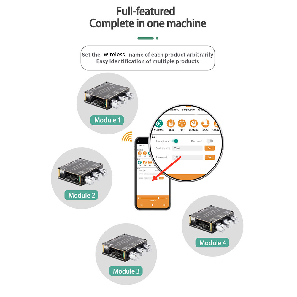 4. Support mobile app control: newly upgrade Sini link app; Support to modify Bluetooth-compatible name; Set Bluetooth-compatible password; Off / on tone