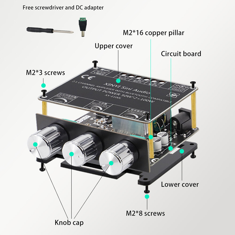 XY-E100L App Control 50Wx2+100W Amplifier 2.1 Channel Subwoofer Audio Board