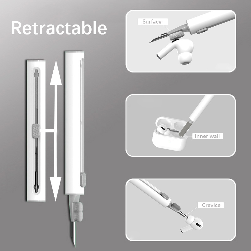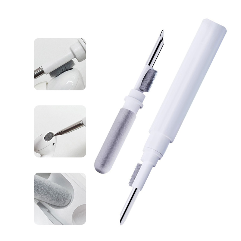 1.Easy to operate. 3-in-1 headphone cleaning kit with flocked sponge, high-density brush and metal tip.