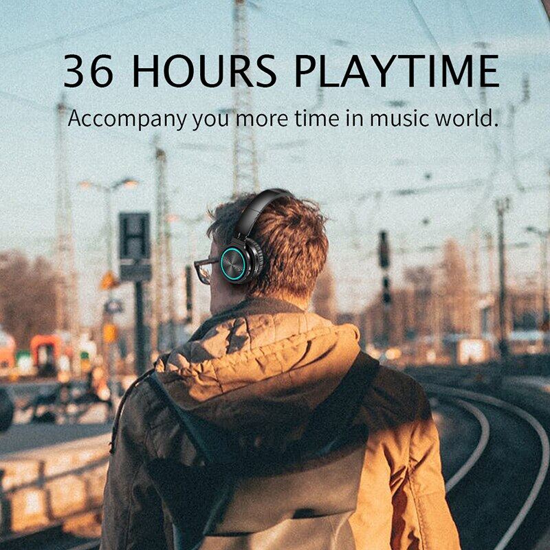 Unique led breathing light can switch 7 color automatically, bring your more romantic and great time. Under the LED mode, the battery can last Long hrs. Upgraded battery allow you have Long hours music enjoyment, you can use it as a wired headset with provided audio cable. 10-minutes charging for 2 hours music time. Note: You can long press the V+ and V- button at the same time, to stop the light.