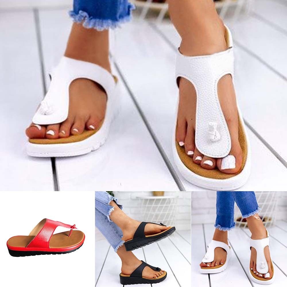 Beautyer Womens Orthopedic Sandals Low Wedge Open Toe Anti-Slip Mules Slides Shoes Size