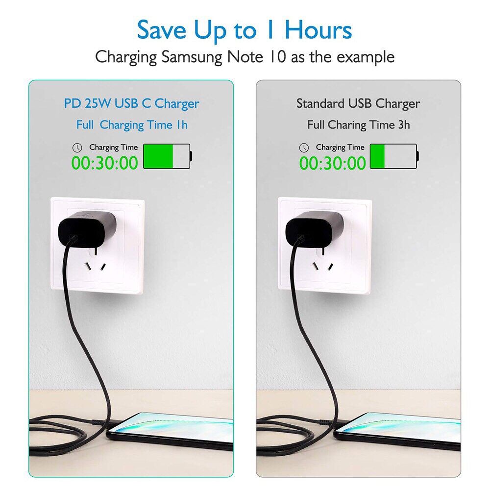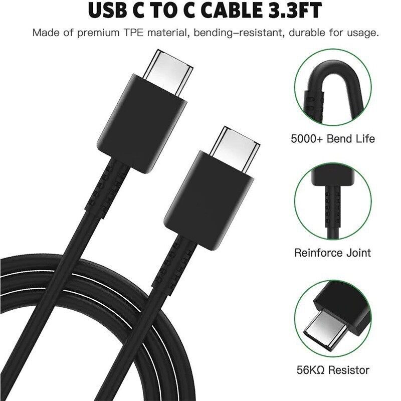 100% Samsung S9/18W/25W PD Charger USB C Type C To Type C Fast Charging Adapter With Cable For S10 S10+ Note 10 Note10+ S21