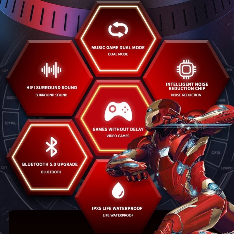 Marvel BTMV15 TWS Wireless Bluetooth Earphone BT5.0 Sports Gaming Earphone Noise Cancelling Waterproof Bluetooth Ear Phone With Mic Support Call Video IOS Android Universal