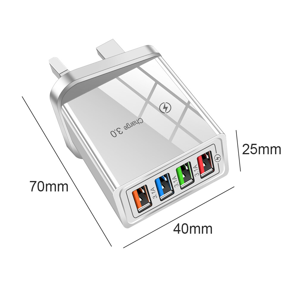 4 Ports USB Charger for Mobile Phone 4USB Wall Charging Adapter with LED Display Home Travel