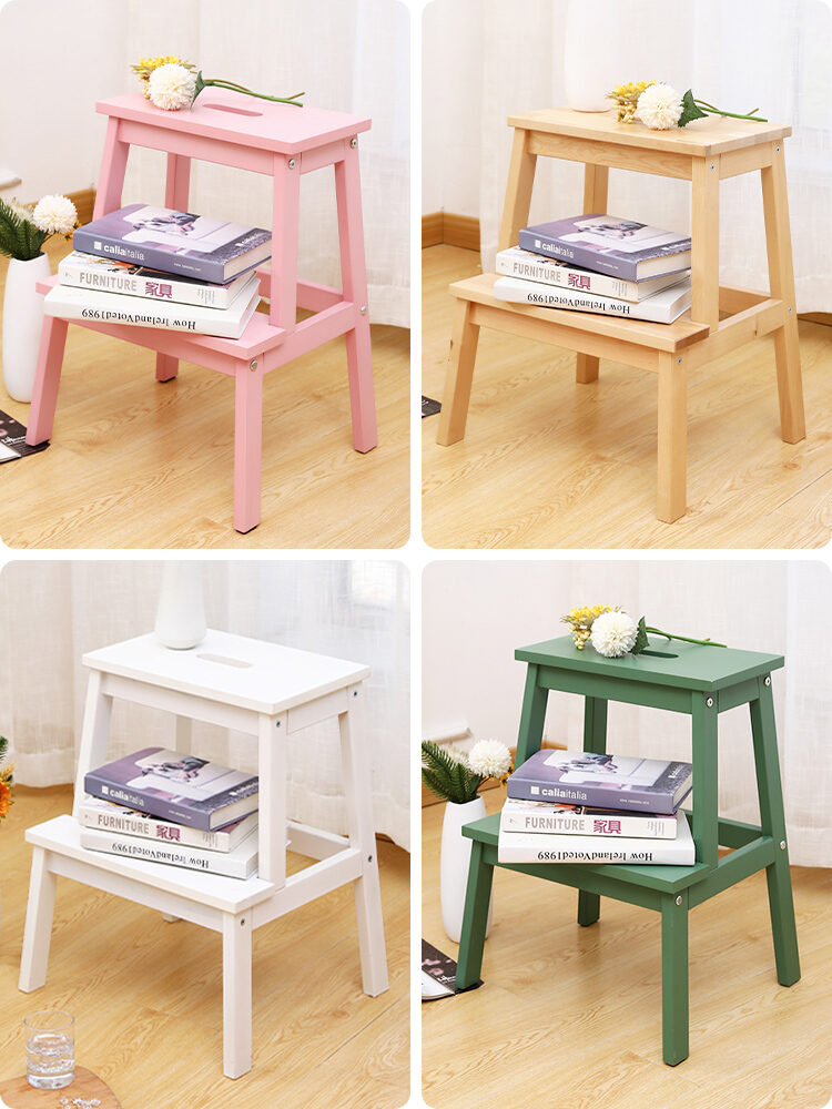 Multifunctional Solid Wood Height Increasing Footstool Children's Double-Layer Stool Non-Slip Climbing Step Stool Stepping Stool Hand Washing Stool